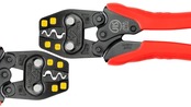 JIS C 9711認証取得品。裸圧着端子スリーブ用(1.25・2・5.5・8)。二重テコによる倍力効果で圧着時の負担を軽減。構造力学計算による軽い圧着を実現。