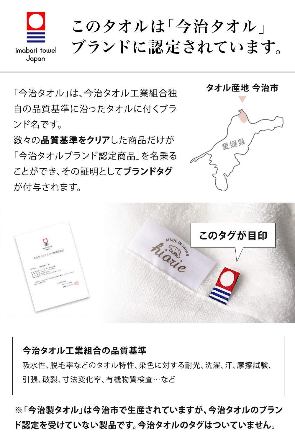 【高品質の証 今治タオル認定】日本を代表するタオル産地今治は、主にギフト向けの高級感のある厚手のタオルや、織り柄をあしらったタオルなどを得意とする産地です。この今治タオルブランドマークは、今治のメーカーをまとめる「今治タオル工業組合」独自の品質基準に合格した高品質のタオル商品であることを保証するものです。