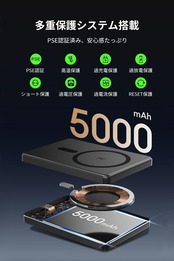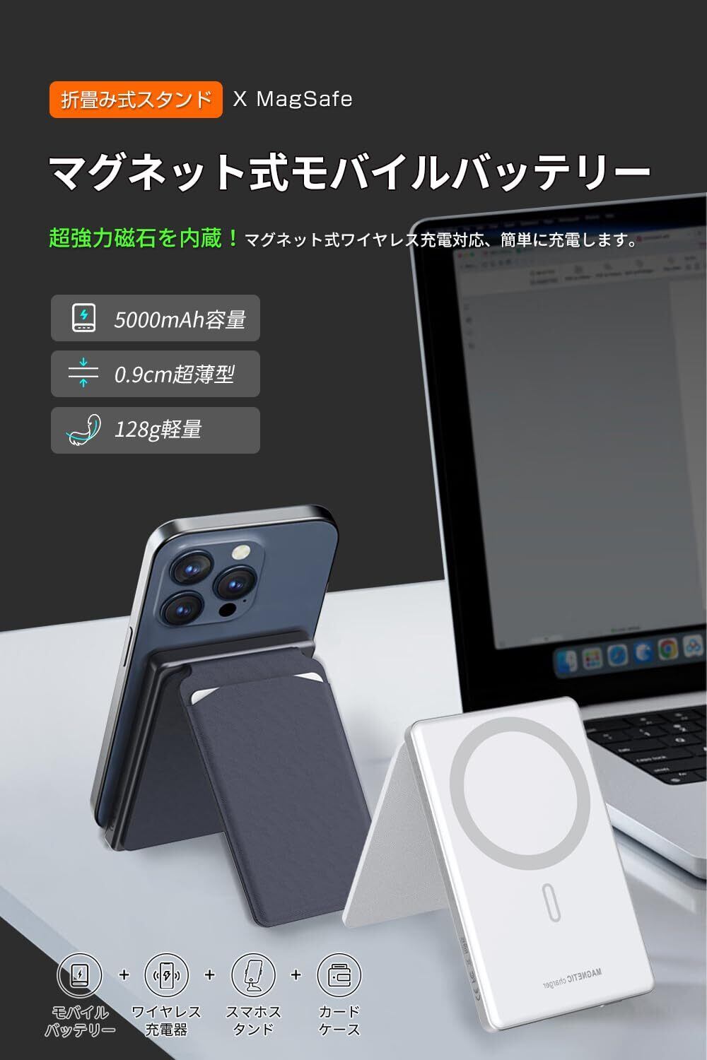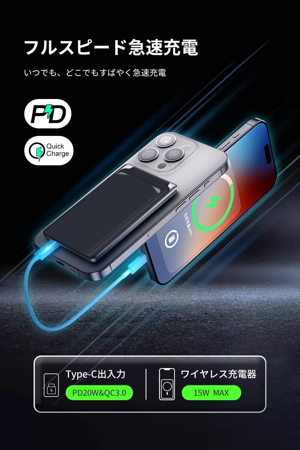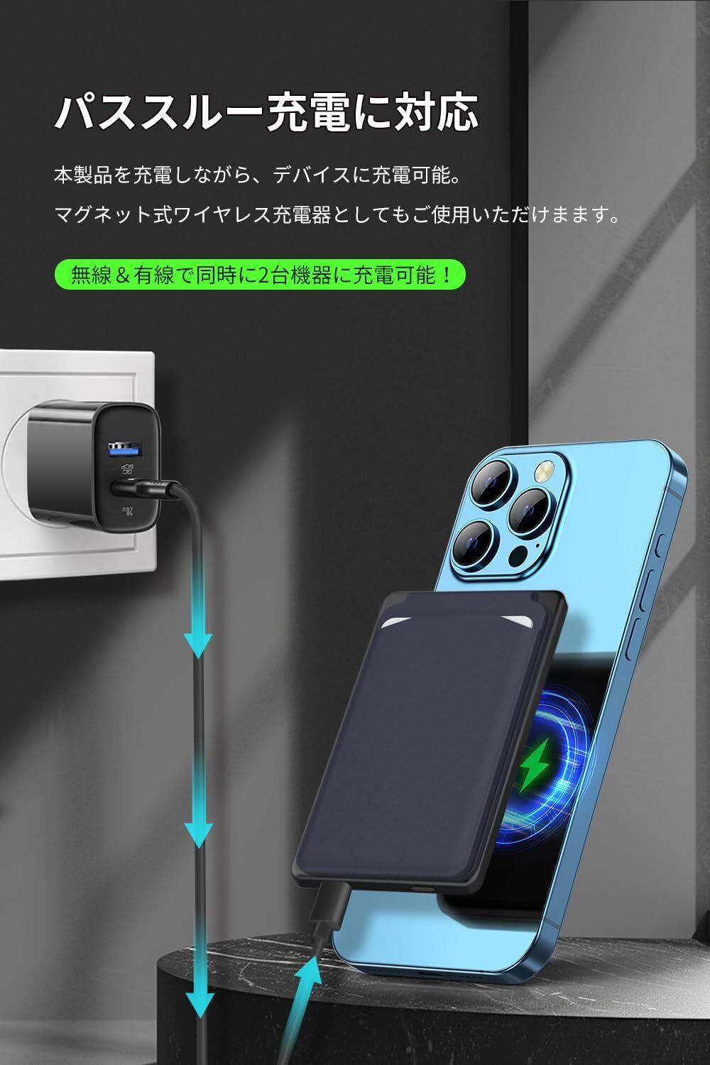 モバイルバッテリー magsafe向け マグセーフ充電器 5000mAh 小型 PUスマホスタンド マグネット式【9mm超薄型/PD20W急速/PUカードケース付き/USB-C入出力/PSE認証】ワイヤレス モバイル バッテリー スマホ充電器 LED残量表示 iPhone/Android/AirPods対応 旅行&出張 (黒)