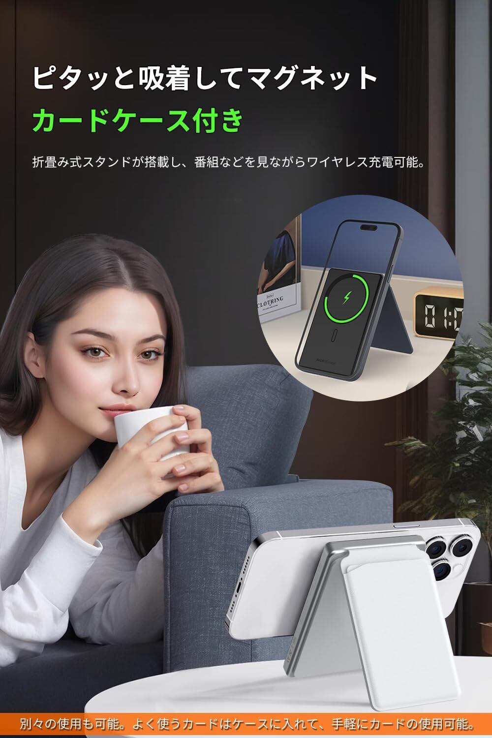✨【取り外せるMagSafe カードケースとセット!】今回、スマホスタンドとカードケース機能を兼ね備えたマグセーフモバイル バッテリーが登場!magsafe向けモバイルバッテリーとマグネット カードケースをセットして、モバイルバッテリーであり、カードケースであり、出かける際には便利なアイテムです。カードケースが取り外し可能、別々の使用も対応します。クレジットカード、運転免許証、定期券、Suicaなどを2枚まで収納する可能です。
