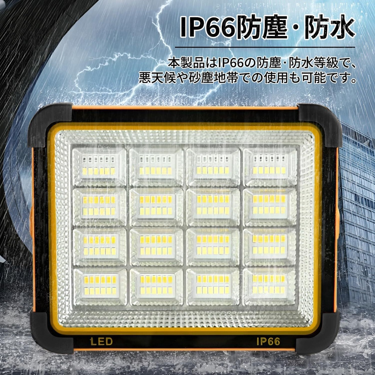 【IP66防水&SOS信号】IP66防水防塵仕様で、影響を与えないように処理しました、雨や雪にさらされても大丈夫です。緊急な時、赤青点滅モードをSOS信号灯として利用でき、どこでも携帯できる役立つなライトです。テント内の照明、夜釣り、バーベキュー、車中泊、日常使用、常備灯、地震対策、停電、アウトドア、キャンプライト、登山、防犯 、散歩、非常時などに大活躍です。注意:LED作業灯は防塵防水仕様で屋内外問わず使えるライトで突然の悪天候にも対応できます。ご注意:本製品は防水仕様ですが、雨水が製品内部に浸入して内部部品を損傷し、耐用年数に影響することを避けるため、長時間雨水にさらさないでください。この製品は水に浸すことはできませんのでご注意ください。