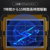【大容量投光器】作業灯は超大容量バッテリーを内蔵します。モードによると7時間から15時間以上長時間駆動が可能で、キャンプや釣り、スポーツなど多くのシーンで活躍が期待できます。パッケージ内に充電ケーブル付き、場所を決めて充電する必要はありません。充電器、パソコン、一般的なアダプタでいつでもどこでも充電できます。