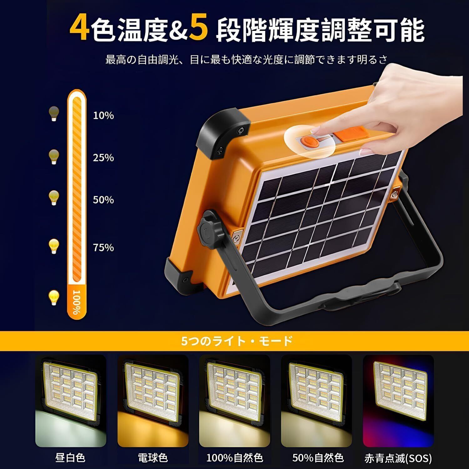 【200W高輝度モデル】投光器 LED 15000lm 作業灯 5つ点灯モード フラッドライト IP66防水 太陽光 ソーラー充電/Type-c充電 折り畳み式 アウトドア 投光器 led 屋外 充電ケーブル付き