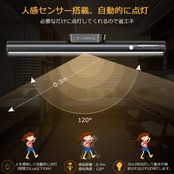 【8時間連続点灯と4000mAhバッテリー】このバーLEDライトは4000mAhバッテリーが内蔵されるので、フルー充電で最弱明るさは50時間で最強の明るさでも8時間連続点灯できます。人感センサーモードでは10回/日に点灯させて100日以上に充電不要です。頻繁に充電しなくていいです。ご注意:5V 2Aのアダプターを使ってください。センサーモードの使用温度は0°以上であること。 0°以下になるとセンサーが反応し鈍くなります。