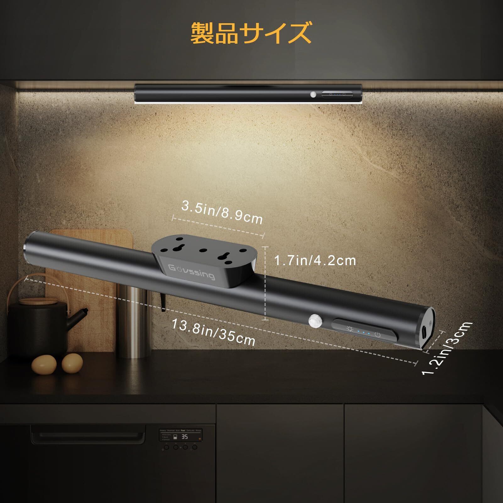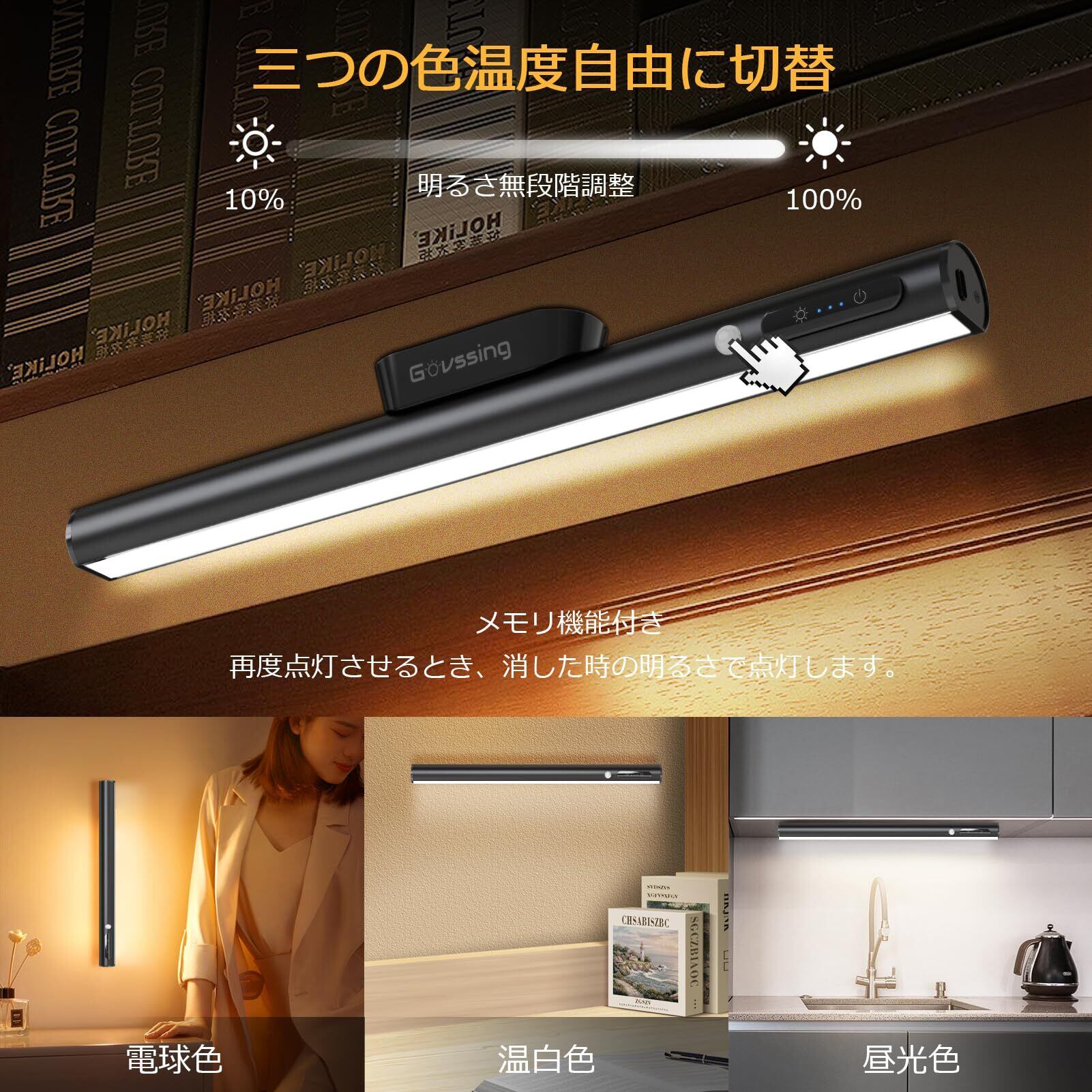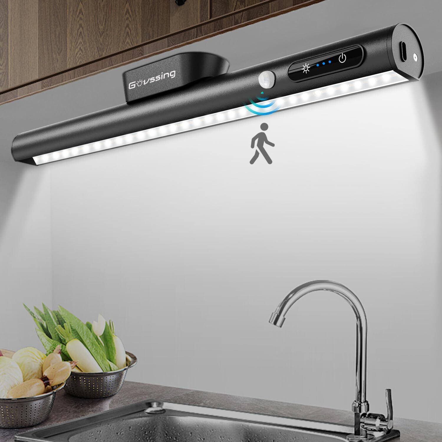 Govssing LEDライト 人感センサー 35cm 充電式 4000mAh 大容量 キッチン 三段階調色 無段階調光 取付簡単 両面テープ/磁石付属/ネジ締め付け 自動点灯 省エネ 高感度 高輝度 玄関/寝室/クローゼット/子供部屋/廊下/階段/地下室などに適用