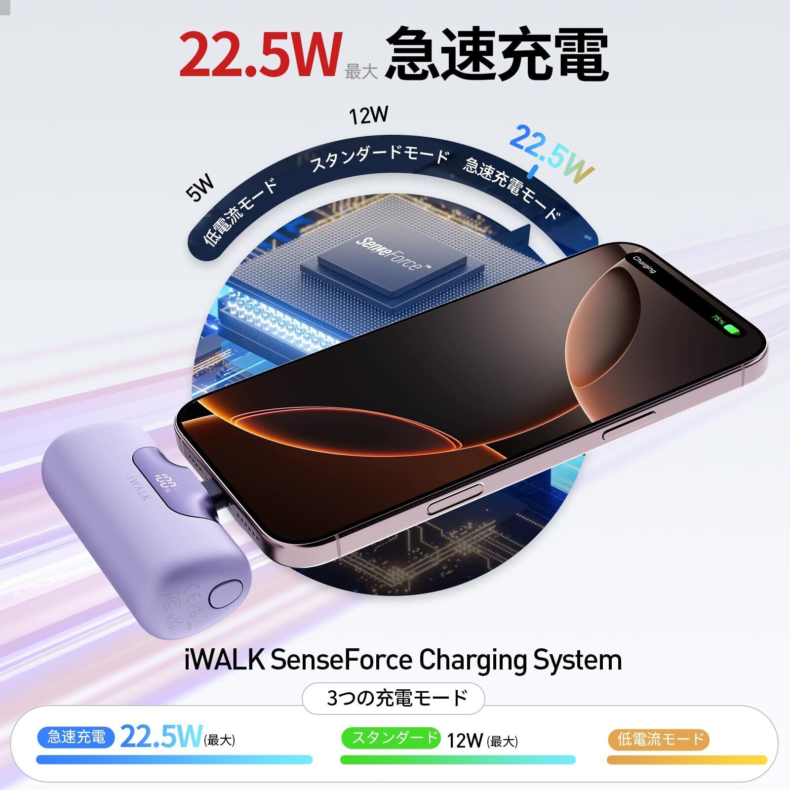【新春セール】iWALK モバイルバッテリー 【2025年強化版・22.5W急速充電・5500mAh大容量】 軽量 小型 タイプc Type-C コネクター内蔵 アイウォーク モバイル バッテリー USB-C端子一体型 モバイル充電器 iPhone 16/15/iPad/Android対応 デジタルディスプレイ搭載 持ち運び便利 コンパクト 機内持ち込み可 旅行/出張/停電対策/防災 PSE認証済 (パープル) | ニコニコSHOP