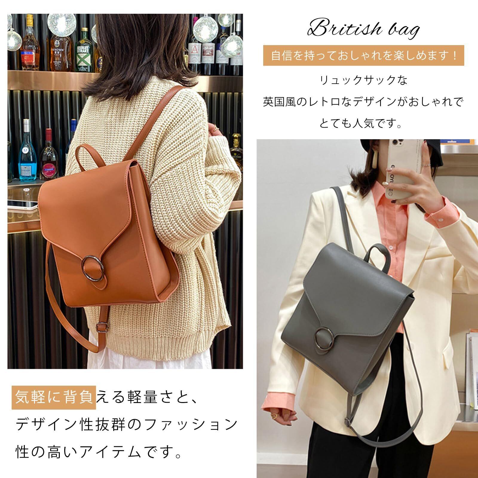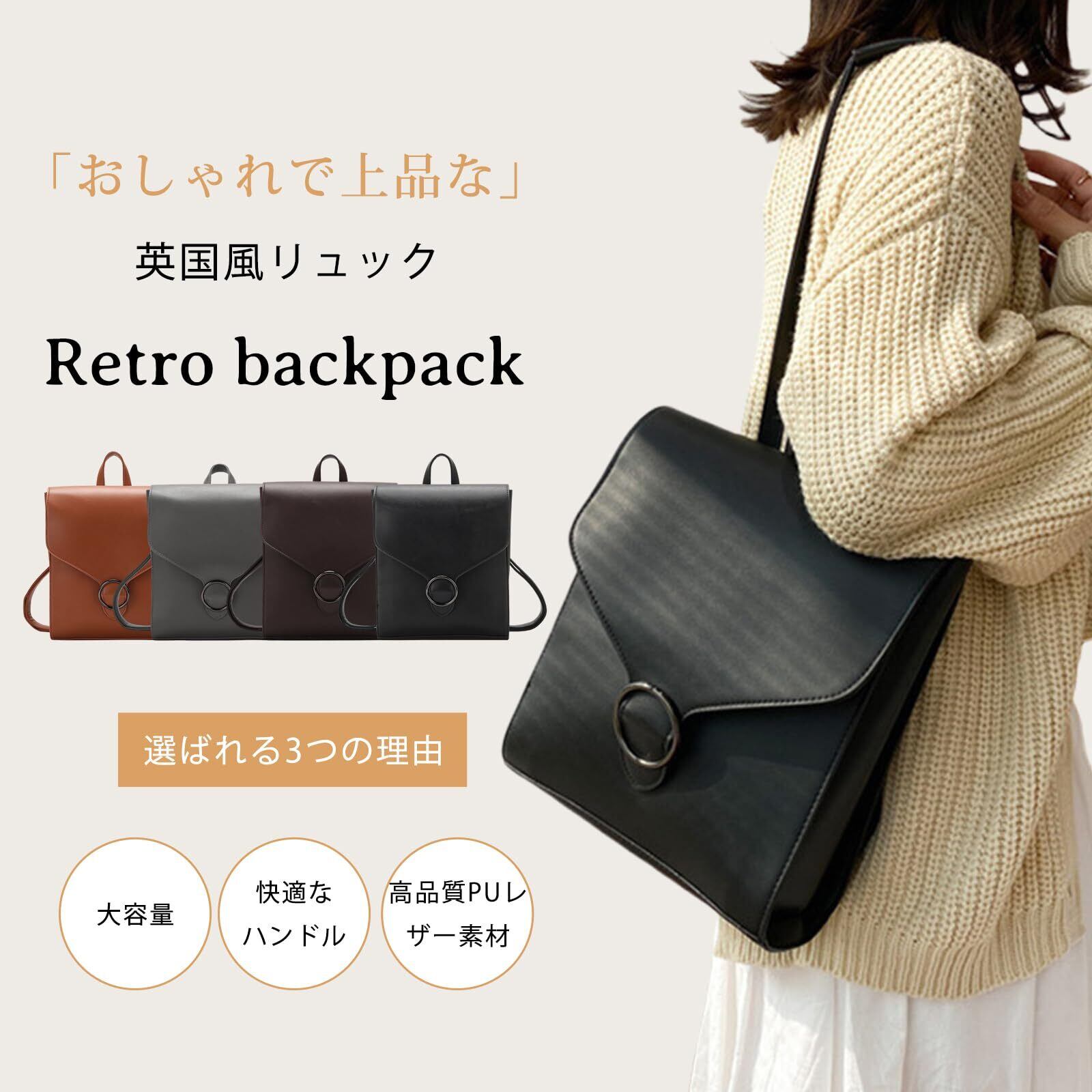 【おしゃれで上品な英国風 リュック】PUレザーの高級感とデザインで英国アカデミー風を感じさせるスタイリッシュなリュック レディースが登場。リュックサックな英国風のレトロなデザインがおしゃれでとても人気です。また、飾りリングのおかげで高級感もアップします。小さめでかわいらしい見た目だけではなく、高級感も大事にしたビジネスリュックです。