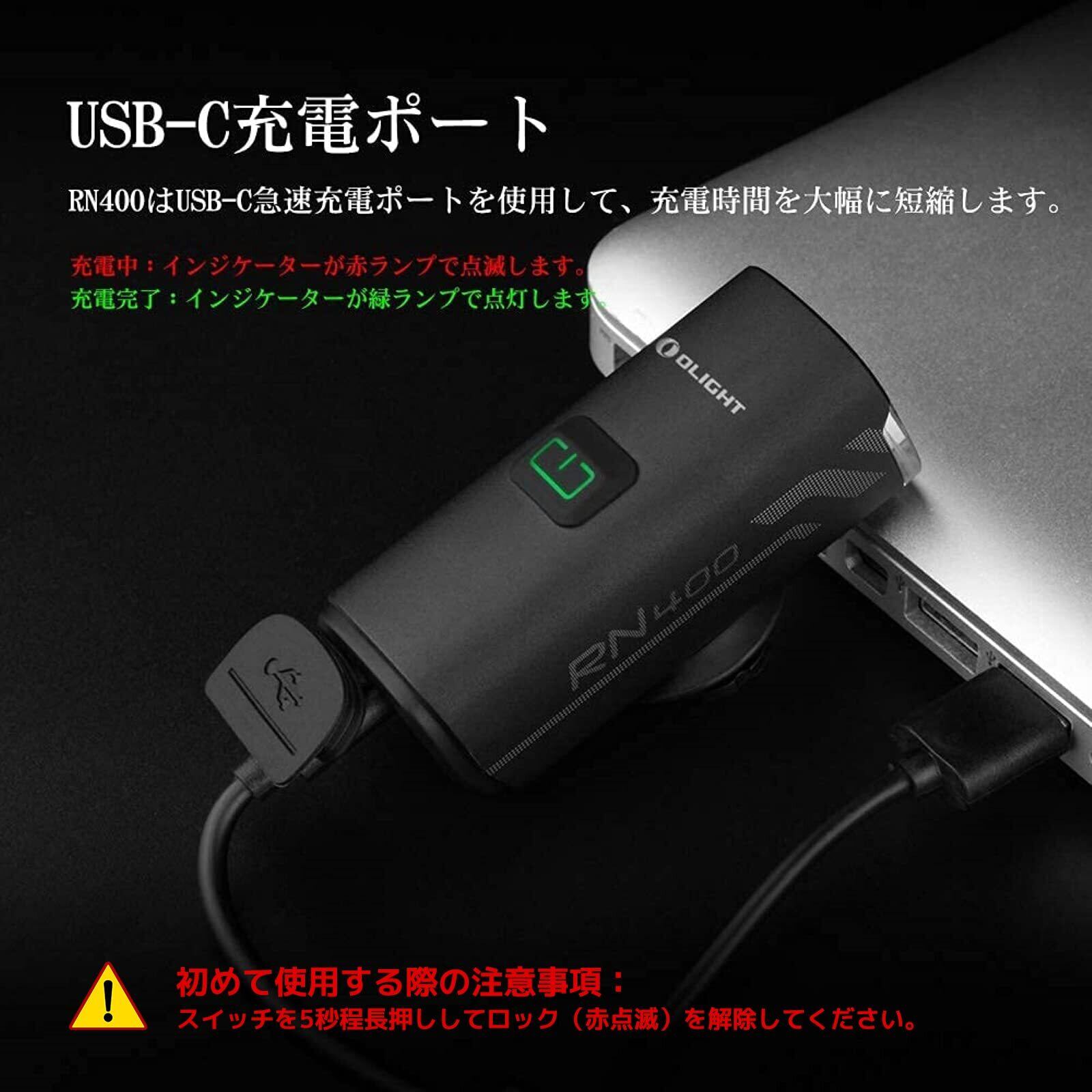 OLIGHT(オーライト) RN400 自転車 ロードバイクライト ヘッドライト 400ルーメン フロント USB充電式 長時間持つ IPX7防水 通勤 通学 サイクル用 防災 夜間走行 5秒程長押しロック解除