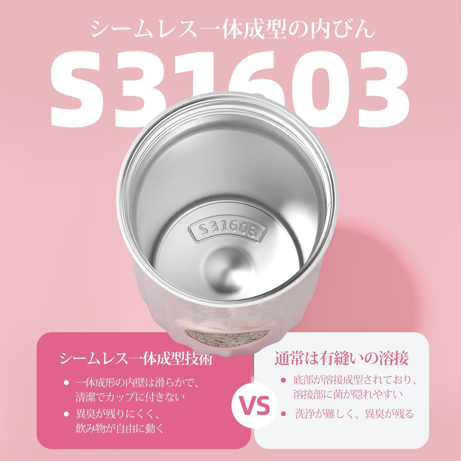 「安心な素材」:カップの内びんは、環境にも体にも優しい高品質なステンレス316を使用しており、蓋には食品グレードのシリコン、PPが使用されています。これらはすべてBPAフリーで、化学物質による影響を防ぎます。※ステンレス316は、日常的に使用されるSUS304(18-8)よりも耐食性が高く、塩分による腐食や錆に強いため、内びん部分には特に優れた耐久性があります。(使用後は中身を放置せず、速やかにお手入れしてください)