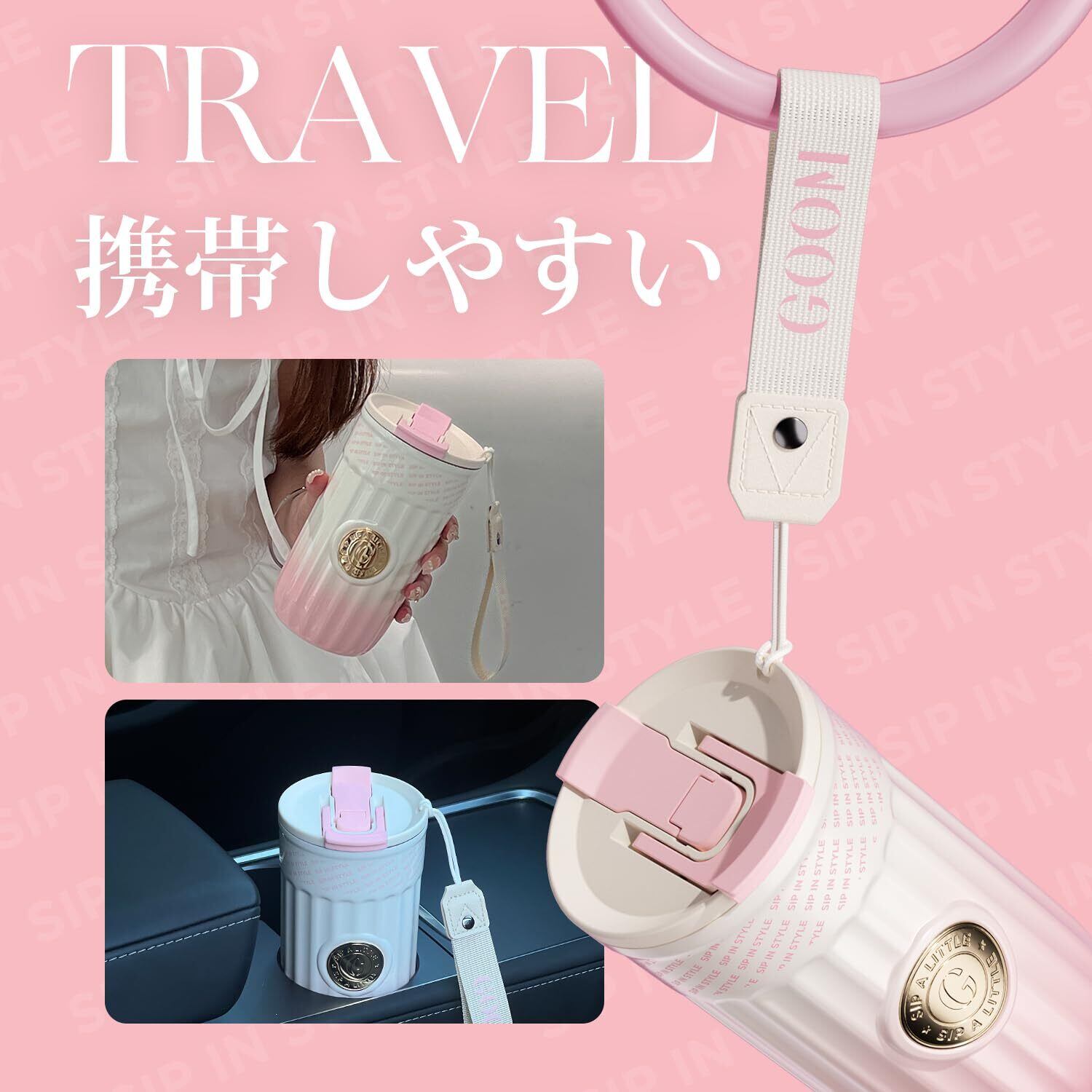 GOOM タンブラー 保温ボトル コーヒーカップ 水筒 500ml 持ち運び可能 ストロー付き 漏れ防止 ステンレス製 316 真空断熱タンブラー 3WAY 保温保冷 蓋付き お手入れ簡単 ストラップ付き (ピンク)