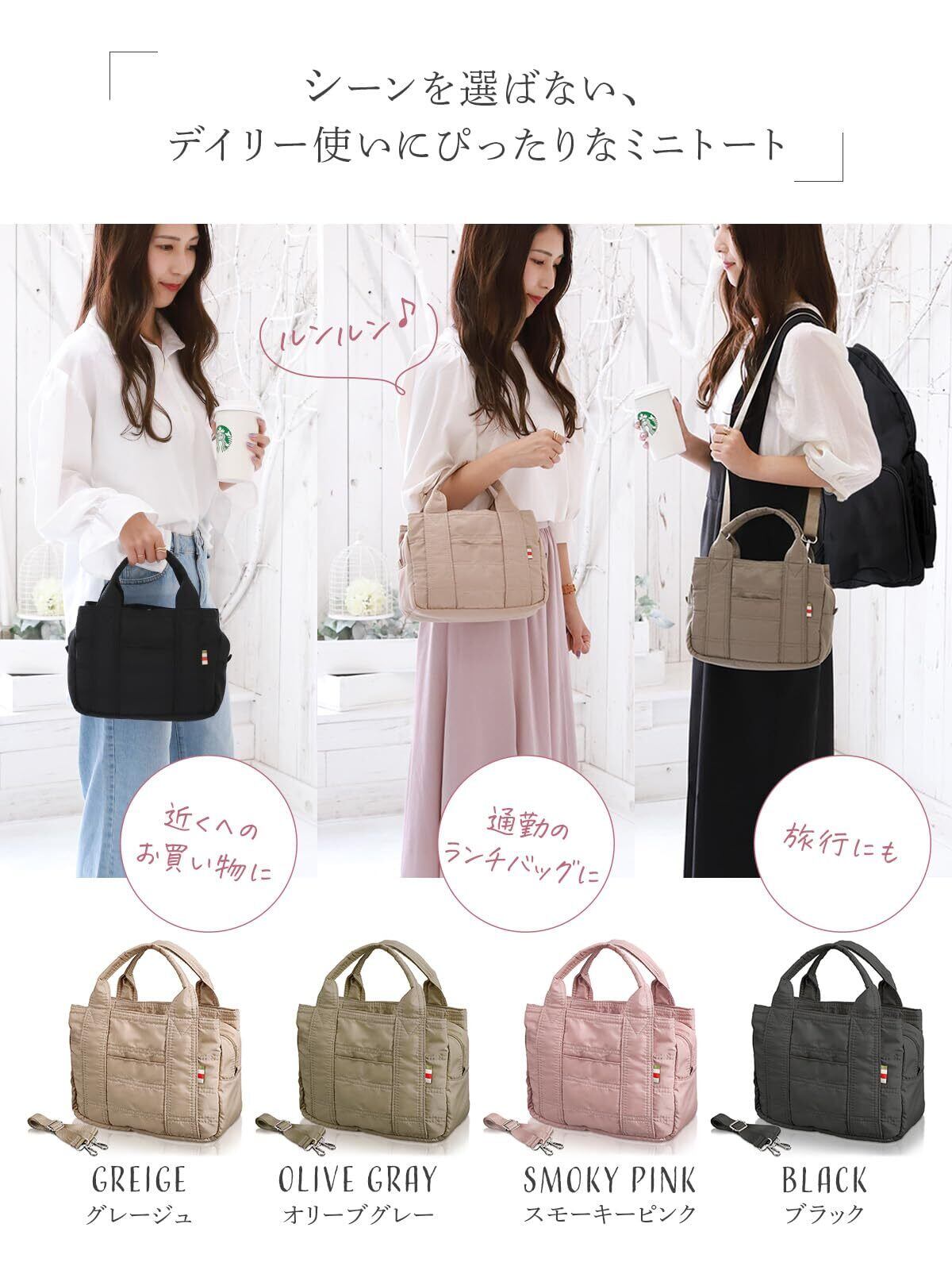 [アンコール] ミニトート レディース 【高見えミニトート】 トートバッグ 小さめ 2WAY ショルダーバッグ 軽量 機能的 使いやすい ランチバッグ 通勤 かばん マザーズバッグ 手提げバッグ ナイロン