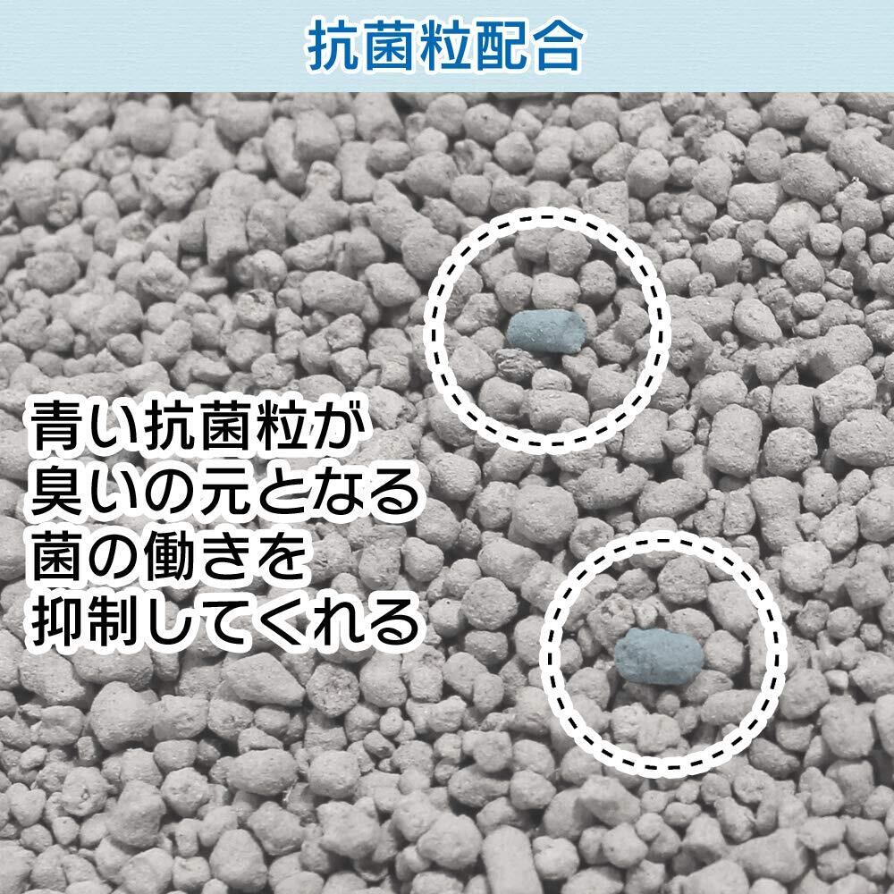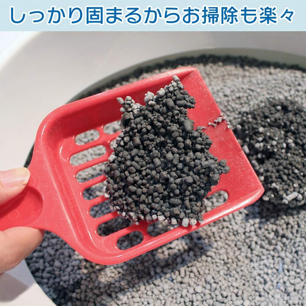 脱臭力のある炭を配合した自然の砂に近い感触の猫砂です。炭の成分のまわりにはコーティングを施してあり、猫の手足、床が汚れにくいようになっています。おしっこのかかった部分だけがすばやく固まり、無駄がなく経済的です。また捨てるときには燃えるゴミとして処分できます。トイレを清潔に保つ抗菌剤入り。