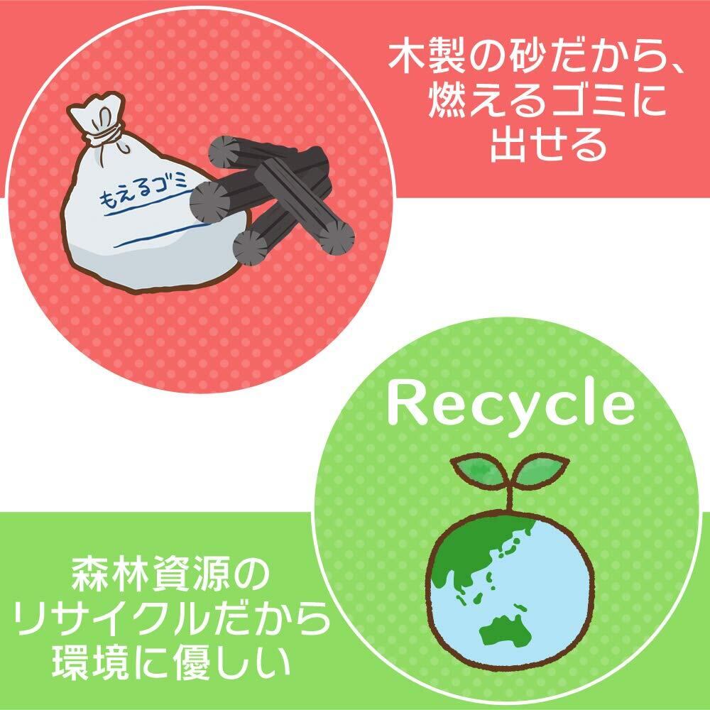 固まるタイプの猫砂です。燃えるゴミに出せます