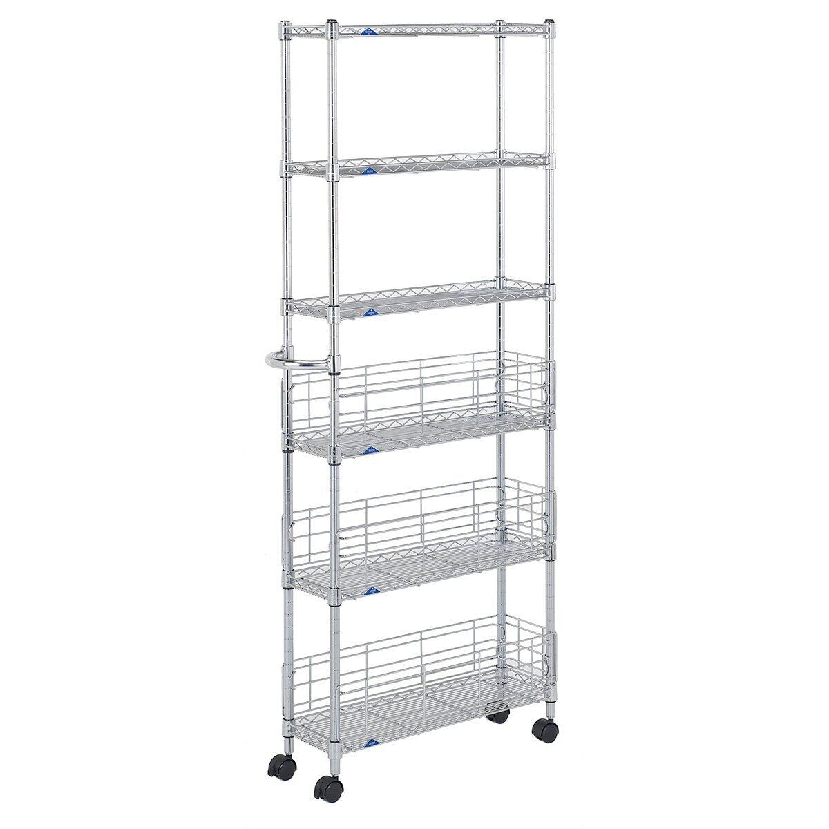 【2022最新】ドウシシャ ルミナス フィール キッチンラック ワゴン スチールラック 隙間収納 収納棚 幅20 6段 サビに強い 防錆加工 組立簡単 キャスター付き 耐荷重80kg (棚板1枚) ポール径19mm 幅19.5×奥行59.5×高さ155cm MD2015-6W | ニコニコSHOP