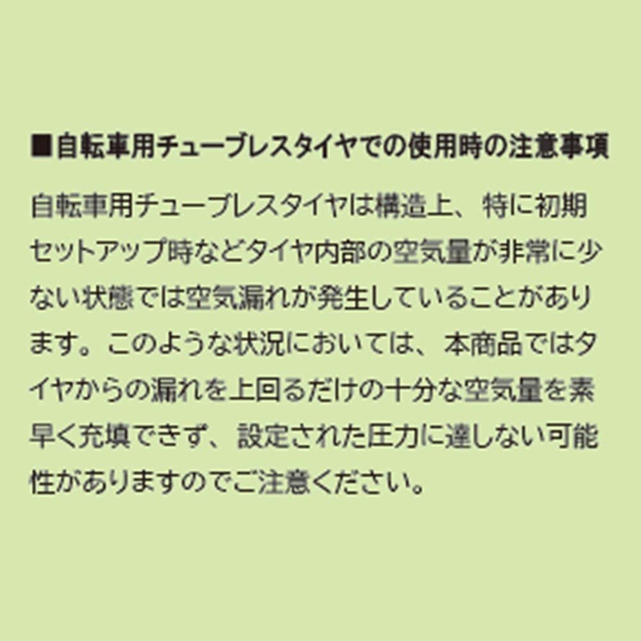 ※最初に「専用タイヤ」と「専用ホイール」を組み込む際、両者は密閉されておらず隙間が多い構造の為、空気がうまく入らない場合があります。(追加注入時など、すでに密閉されている状態では問題ありません) チューブレスタイプの特性となりますので、初期組み込みの為の空気入れを検討される際は、事前にお持ちのホイールのメーカーや専門自転車ショップに確実な方法をお問い合せされることをお勧めいたします。