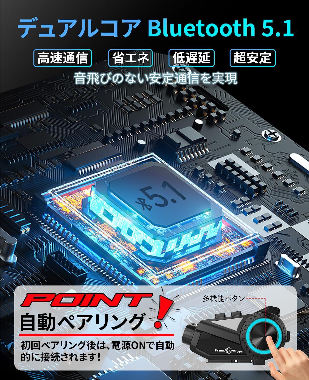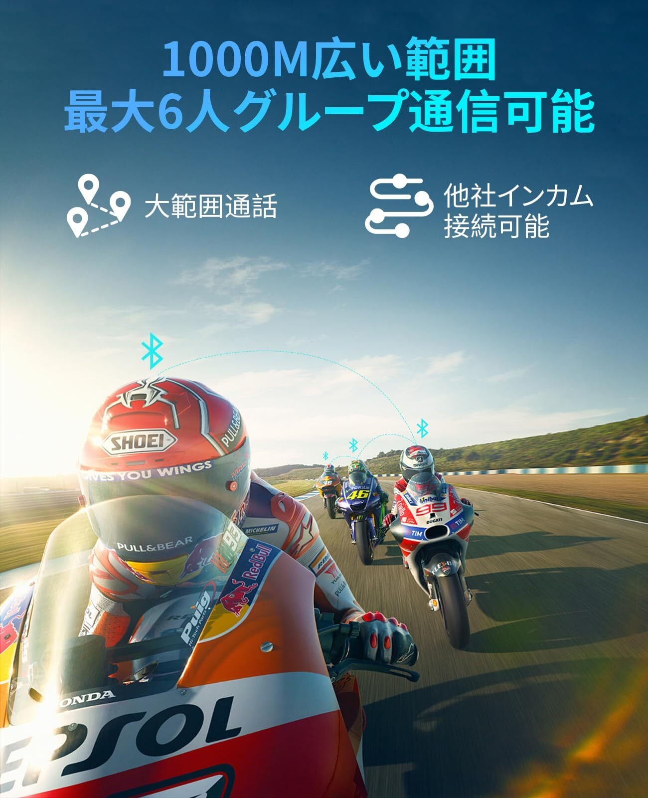 【6人同時通話&全ブランド互換】 最新Bluetooth 5.1チップで1200m超長距離通話を実現。最大6人同時接続可能。FODSPORTS/SENA/Lexinなど他社製インカム カメラ付き機器とも接続可。IP65防水防塵で雨や雪の中でも安心。Siri/Googleアシスタントにも対応。