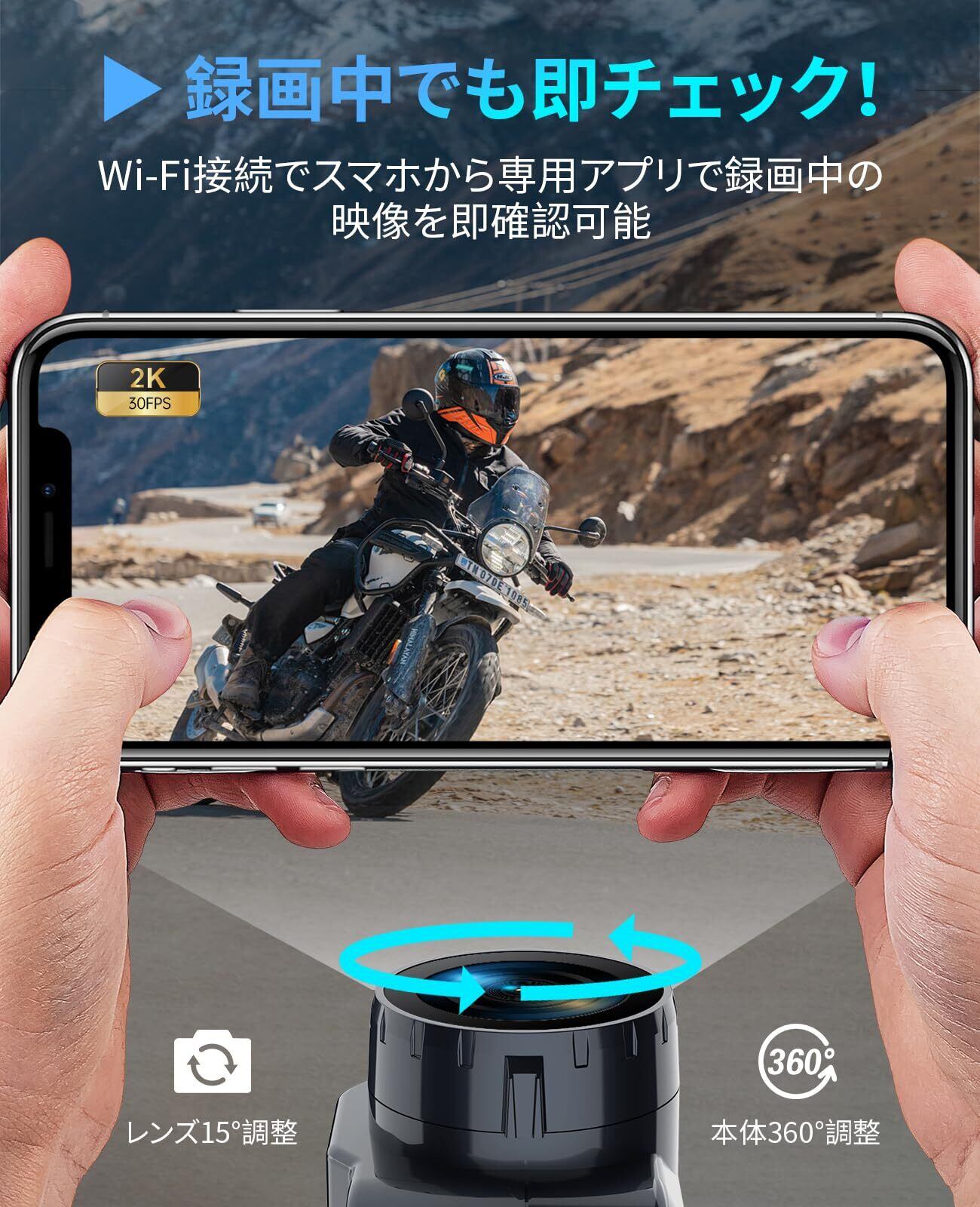 【大容量バッテリー&ループ録画】 満充電時で最大通話45時間/録画7時間の長時間駆動を実現(※Wi-Fi機能使用時は消費電力が大幅に増加するため、駆動時間が短縮される可能性があります)。2000mAh大容量バッテリー搭載で、充電中も途切れない512GB TFカード対応ループ録画が可能。360°調整可能なマウントで、どんなシチュエーションも最適なアングルで記録できます。急速充電には対応しておりませんので、5V/1Aの電源アダプターをご使用ください。