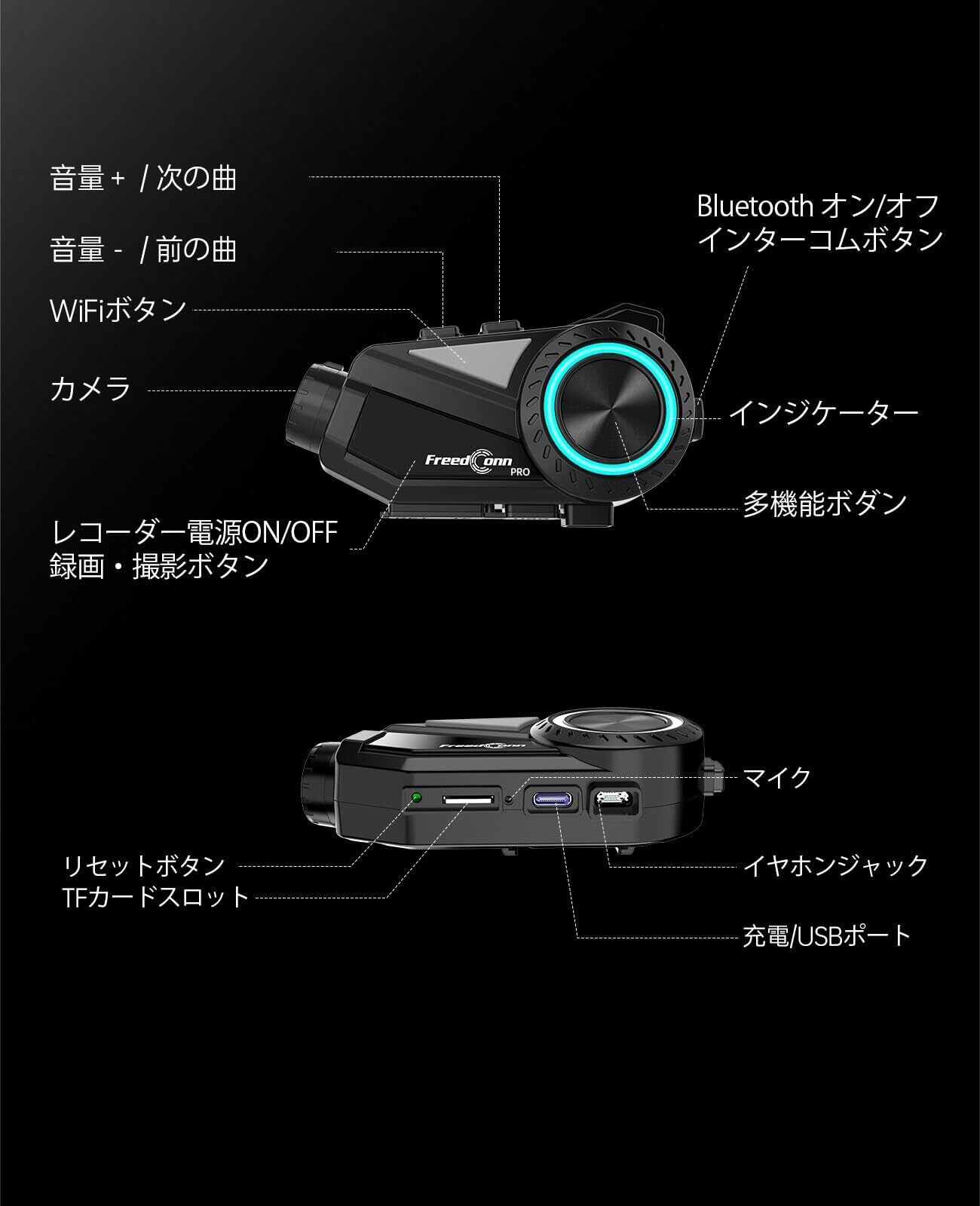 【在庫処分】FreedConn R3 Pro バイク インカム カメラ付き 2Kドライブレコーダー兼用 6人同時通話 1200M通信距離 33時間使用可 2000mAhバッテリー 140°超広角 Bluetooth/WiFi対応 7時間録画 FMラジオ 360°回転 他のブランド互換 | ニコニコSHOP