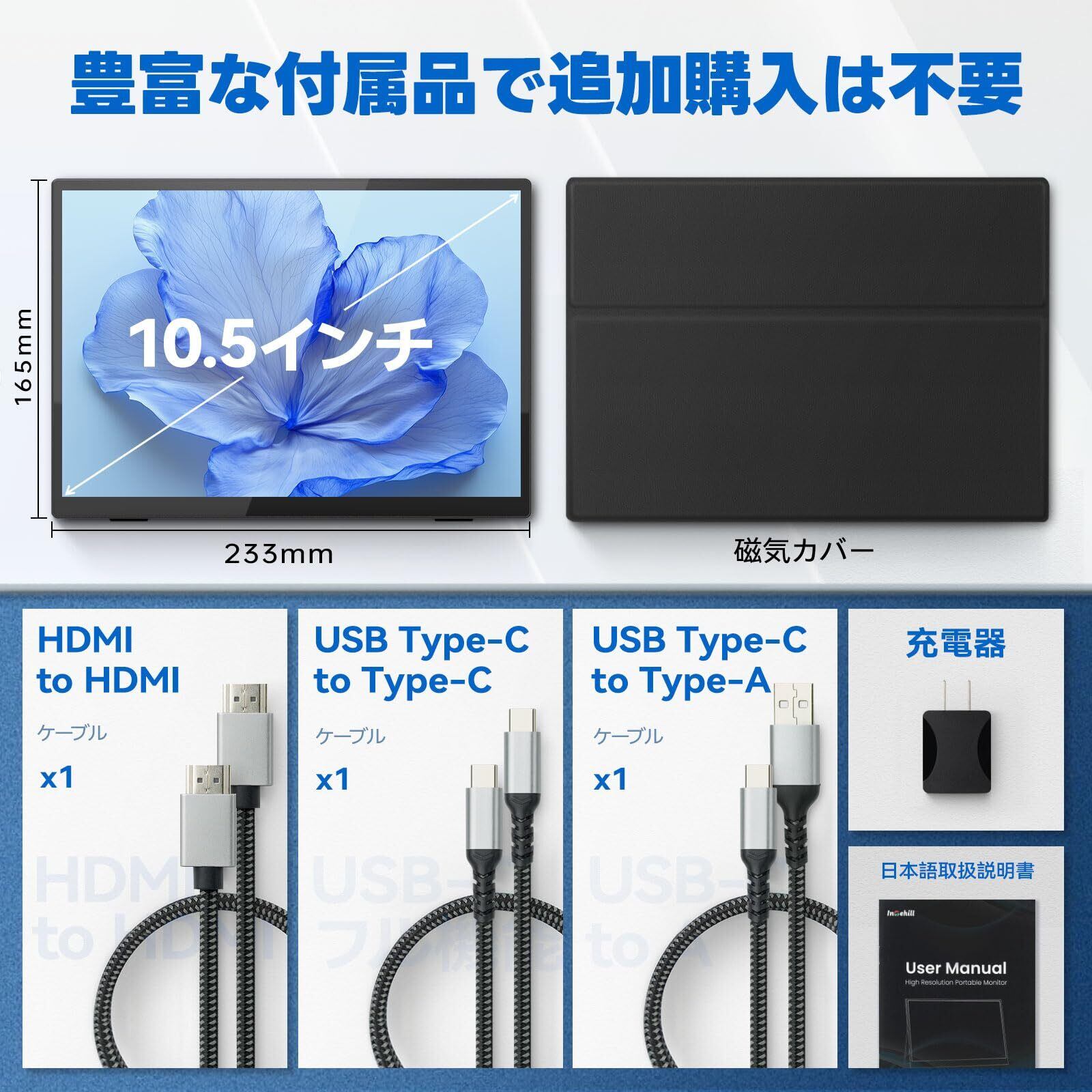 【新着商品】Intehill モバイルモニター 10.5インチ タッチパネル 1920x1280 FHD 3:2比率 sRGB 100% ポータブルモニター VESA対応 光沢IPS HDRサポート Mini PC Macbook Mac Mini ノートパソコン ディスプレイ 10点マルチタッチ対応 T10PA | ニコニコSHOP