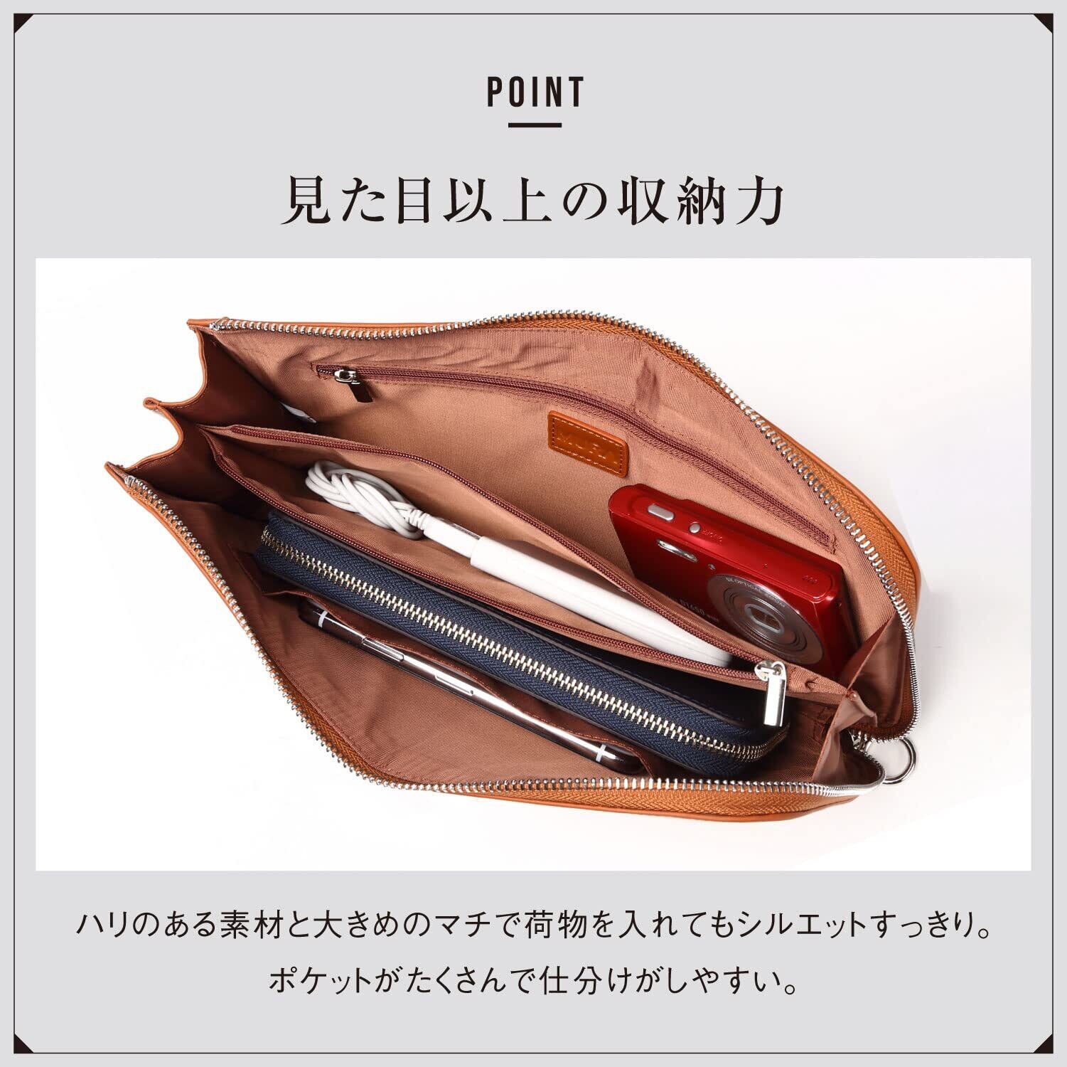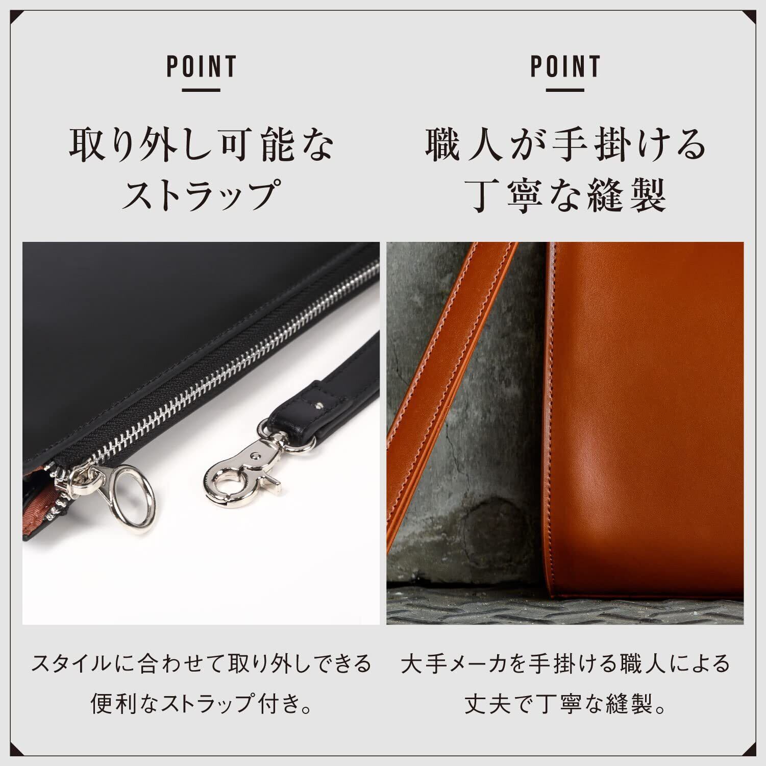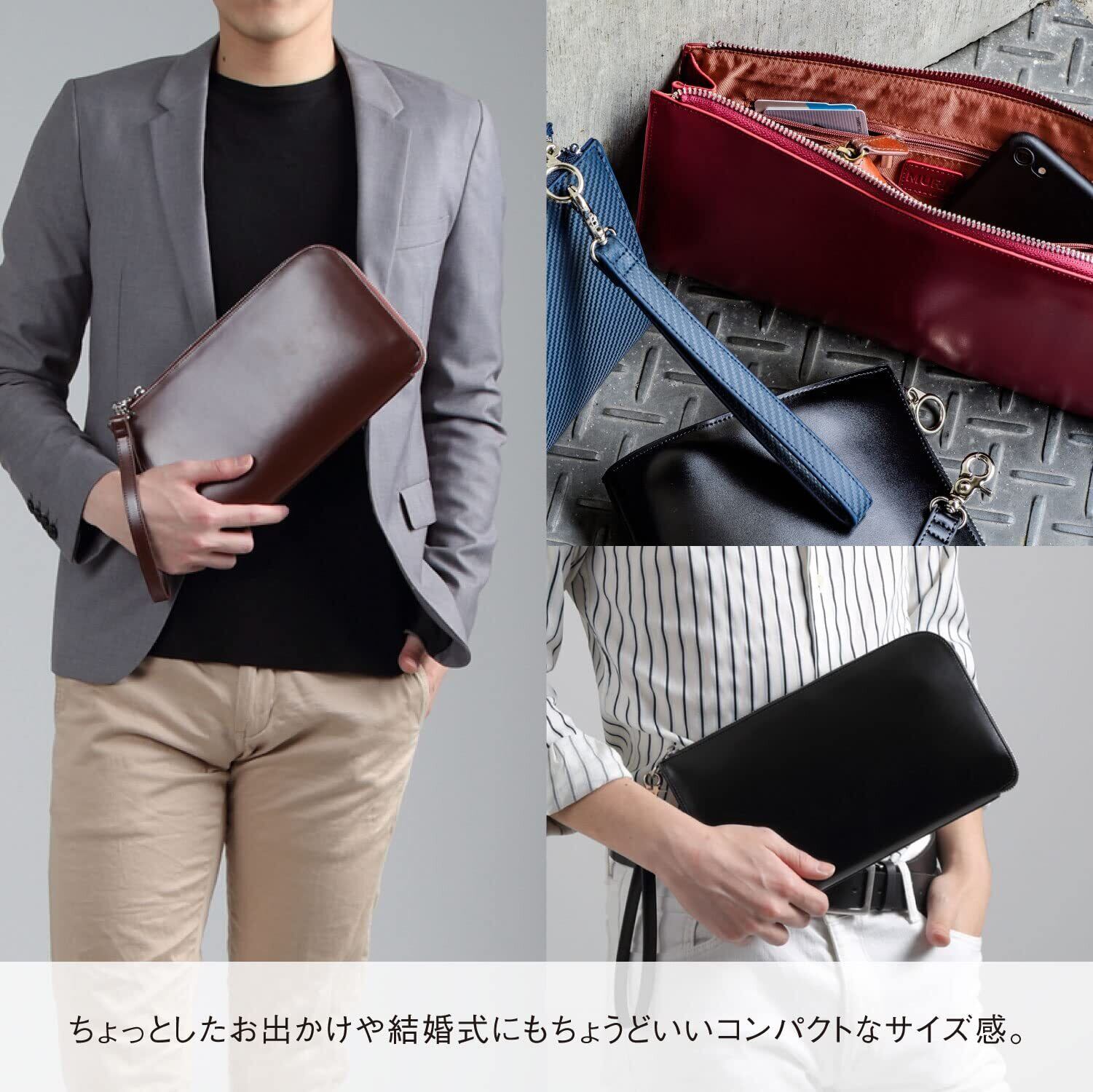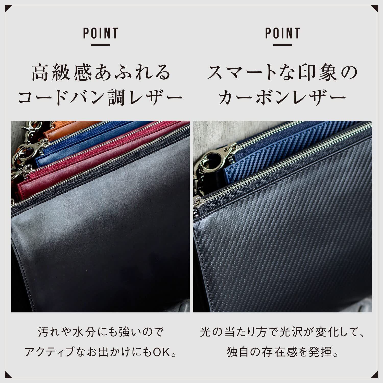 [ムラ] クラッチバッグ メンズ 本革 レザー コードバン調 L字ファスナー カーボンレザー