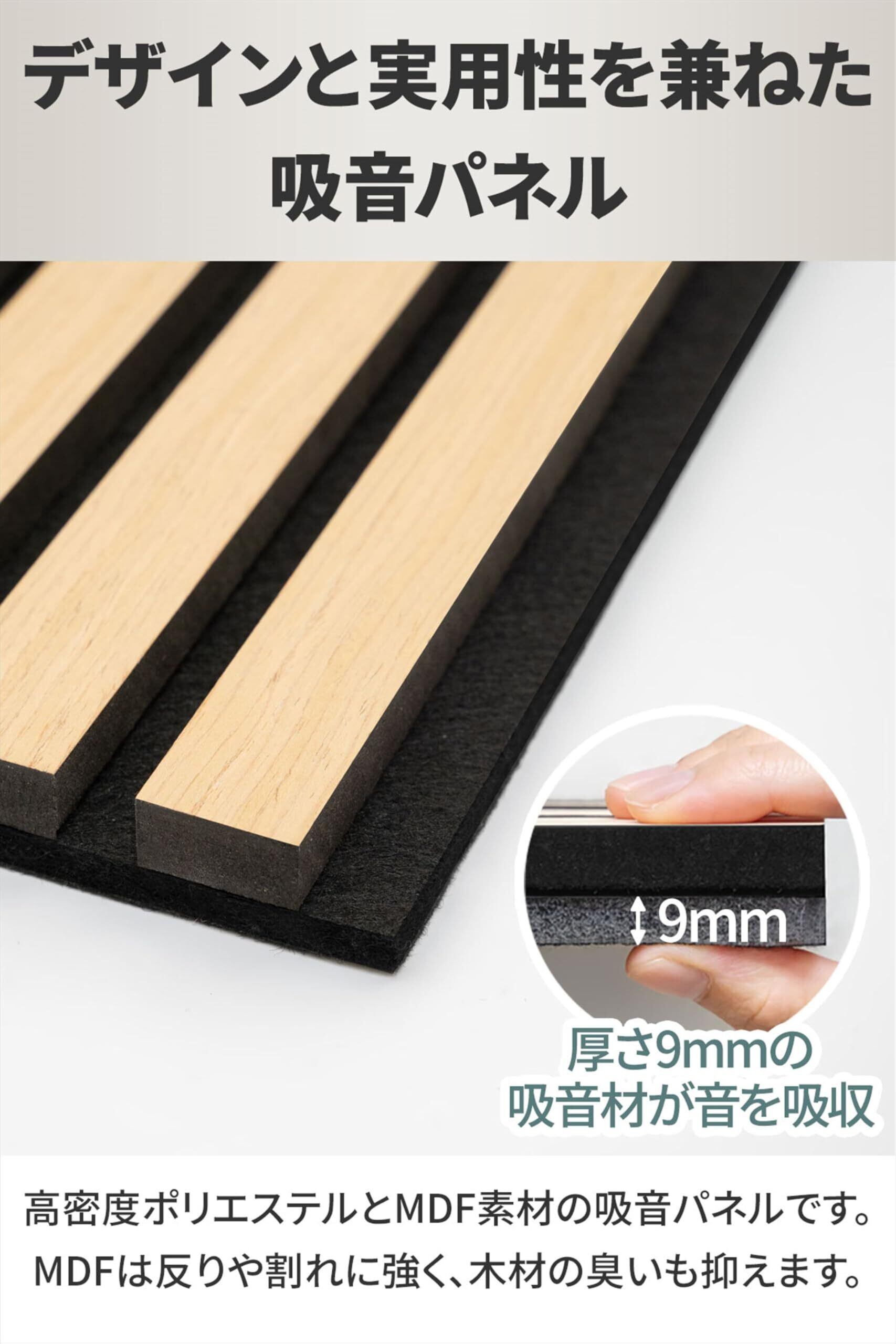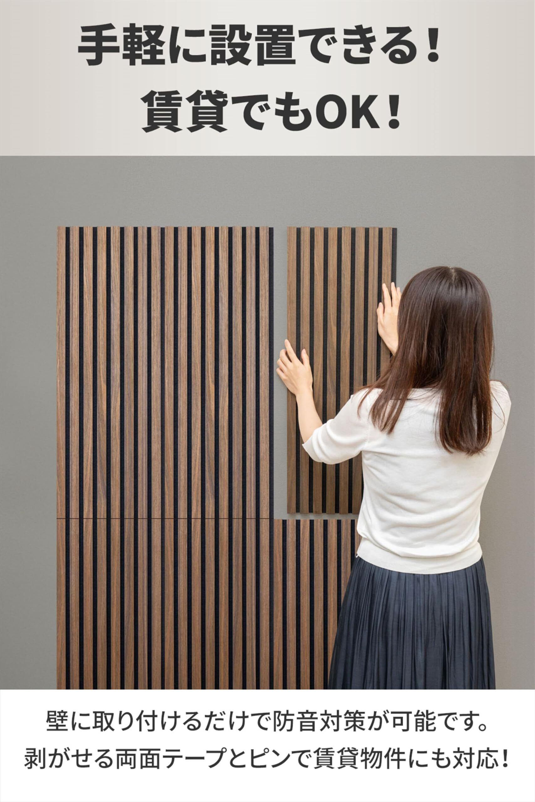【吸音できる&リアルな質感のオシャレなウッドパネル】お部屋の壁をモダンにカスタムしつつ、防音対策ができます。表面は薄くスライスした本物の木材が貼られ高級感があり、ピンや剥がせる両面テープで賃貸物件もOKです。【音に関するこんなお悩みに】・楽器演奏で周囲への音が気になる・ペットの声が漏れてないか気になる・大音量で音楽やテレビ・映画を楽しみたい・近隣からの騒音が気になる・オシャレに騒音対策したい