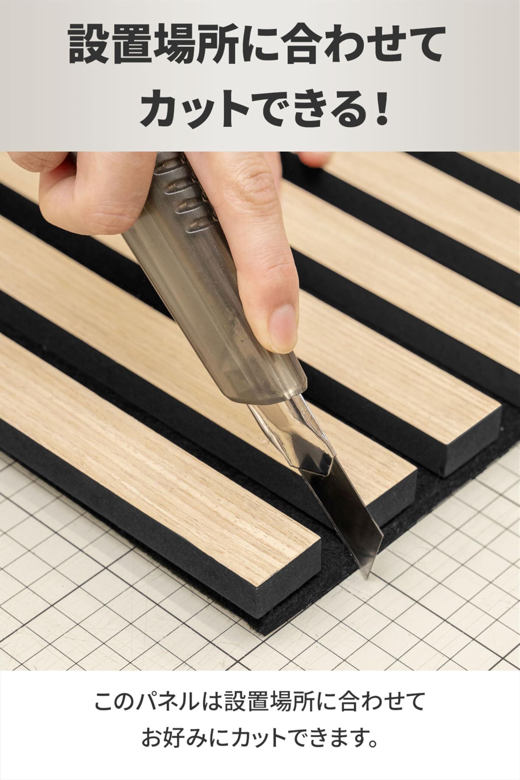 【設置場所に合わせて自由にカット】クッション部分はカッター等で簡単にカットできます。壁掛けテレビの背面など、設置場所やデザイン、お好みにあわせた調節が可能です。【商品詳細】 ■サイズ:(約)幅30cm×高さ80cm×厚さ2.2cm ※1枚あたり ■重量:(約)1.75kg ※1枚あたり ■材質:天然木化粧繊維板 / 高密度ポリエステル繊維板 ■付属品:設置ピン×50本