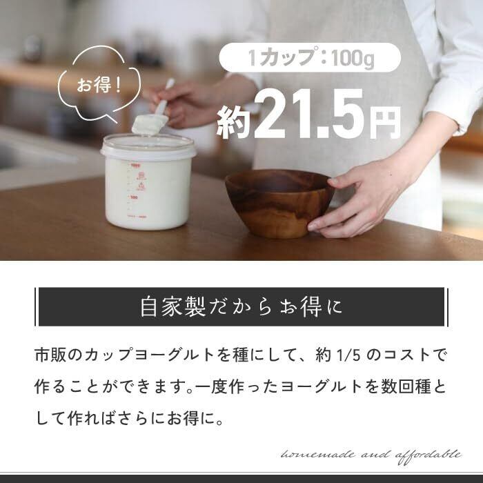 【ヨーグルトの作り方】材料:1本(1L)、ヨーグルト:1カップ(100g) <STEP01>材料を入れる <STEP02>温度とタイマーをセットし発酵させる <STEP03>発酵終了後、冷蔵庫で冷やす(1/5のコストで自家製ヨーグルトが出来ます!)