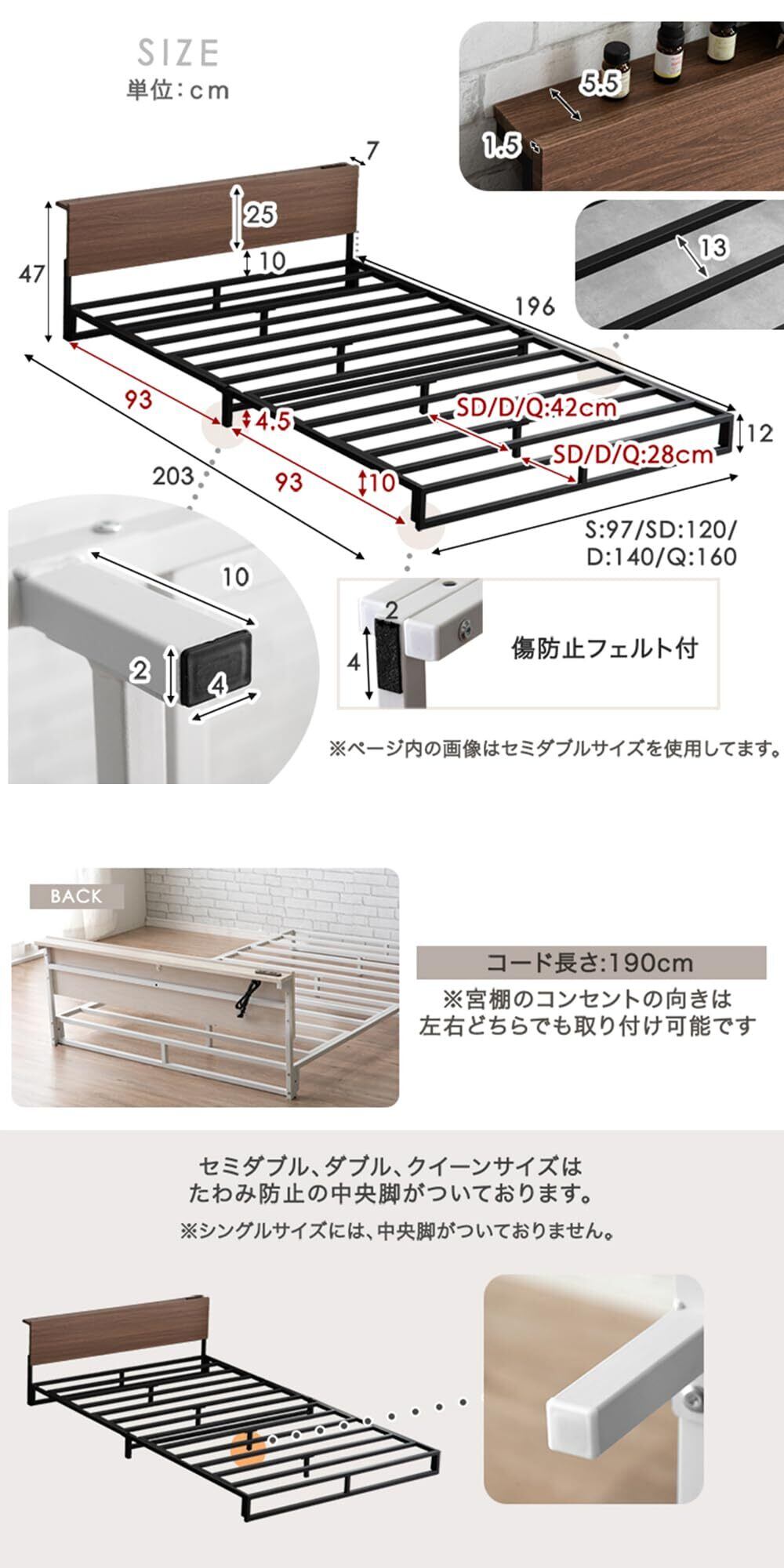 【素材】ベッド:スチール(粉体塗装) 宮棚:強化紙化粧繊維【梱包サイズ】102×34×16.5cm【生産国】中国