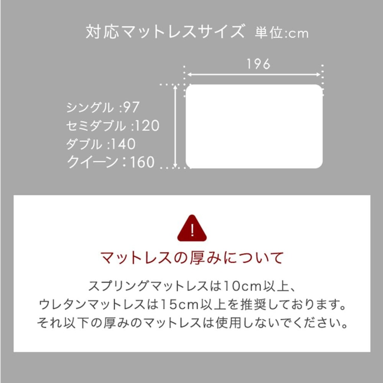 【備考】 ※組立時間は約20分です。(2人での組み立てを推奨)※ページ内で使用しているマットレスの厚さは10cmです。※購入前にロボット掃除機の高さをご確認ください。※マットレスの厚みについては、スプリングマットレスは10cm以上、ウレタンマットレスは15cm以上を推奨しております。 厚みがそれ以下の場合はすのこの隙間にたわむ可能性がありますので、推奨サイズ以下のマットレスは使用しないでください。