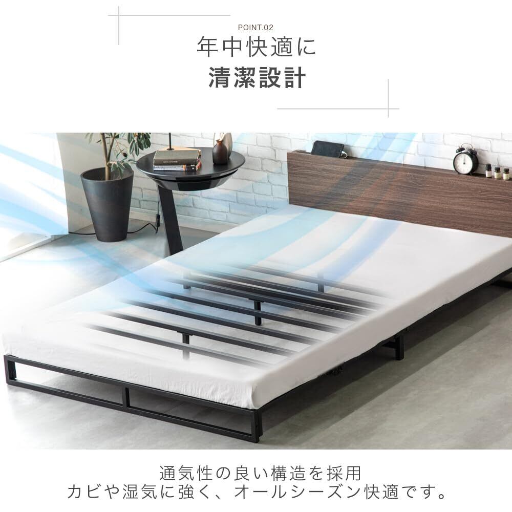 タンスのゲン ベッドフレーム シングル ローベッド コンセント付き宮棚 ロボット掃除機OK 単品 スチールベッド スチール 連結 ホワイトウォッシュ 17620019(90394)
