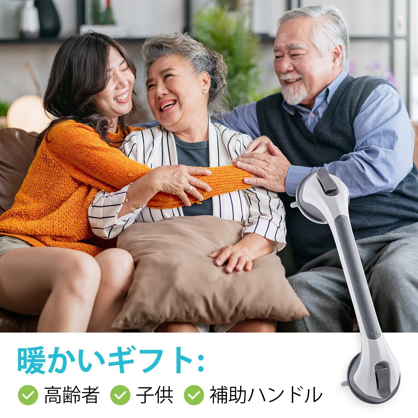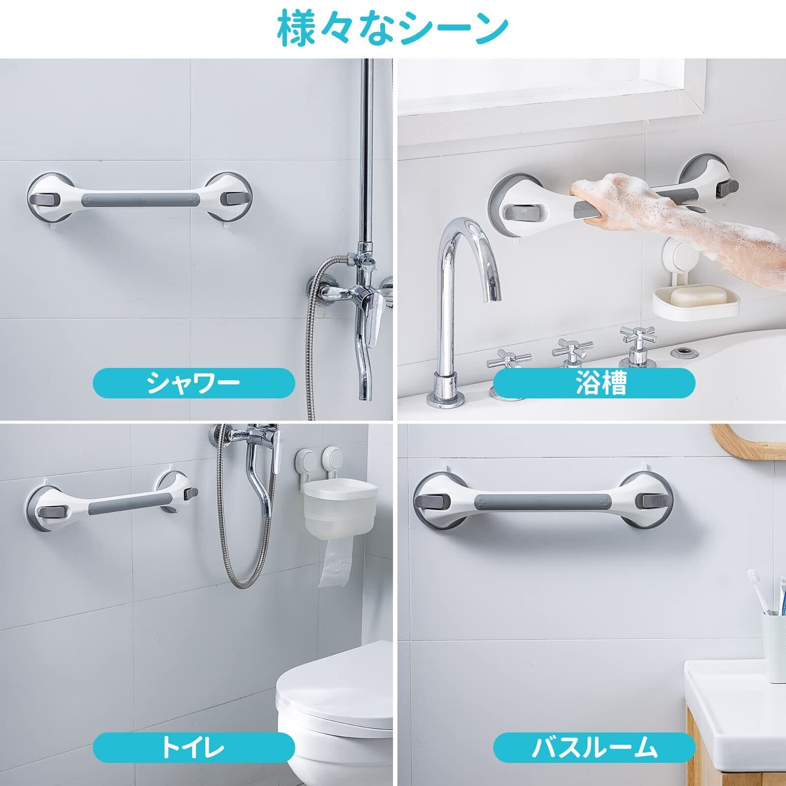 【2022最新】TAILI 手すり 強力吸盤 浴槽手すり 吸盤シャワー 風呂 ドアハンドル ドアノブ 取っ手 浴室 トイレ バス 玄関手摺 入浴介助 高齢者 子供 転倒 予防 敬老の日 穴あけ不要 取り付け簡単 グレー | ニコニコSHOP