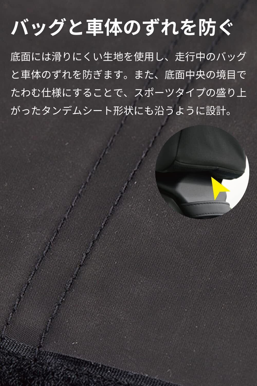 【 バッグと車体のずれを防ぐ 】 底面には滑りにくい生地を使用し、走行時にバッグが車体からずれることを防ぎます。 また、底面の境目でたわむ仕様にすることで、一部車両の盛り上がったタンデムシート形状にも沿うように設計。