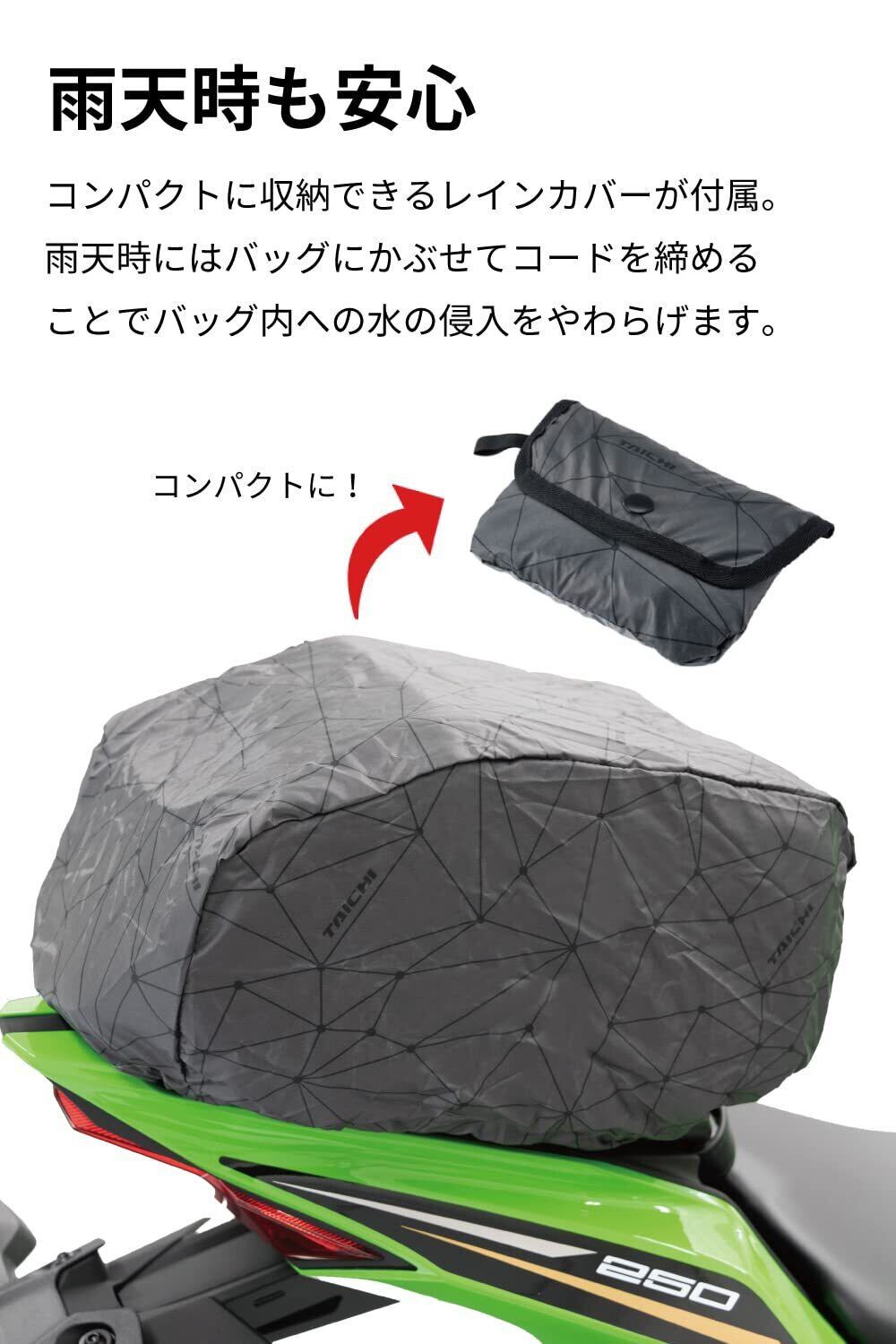 RSタイチ(RS TAICHI) バイク シートバッグ 車載バッグ 固定ベルト付き 取り付け簡単 レインカバー付属 シートバッグ