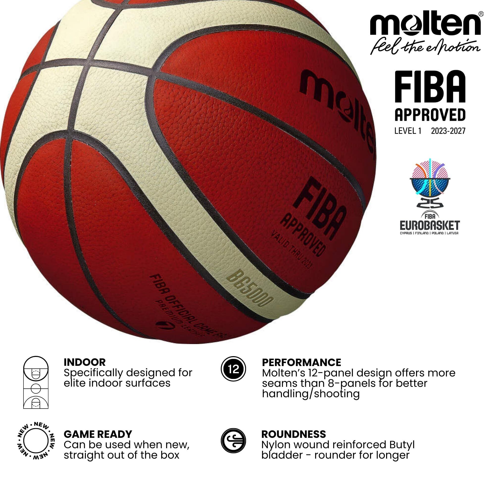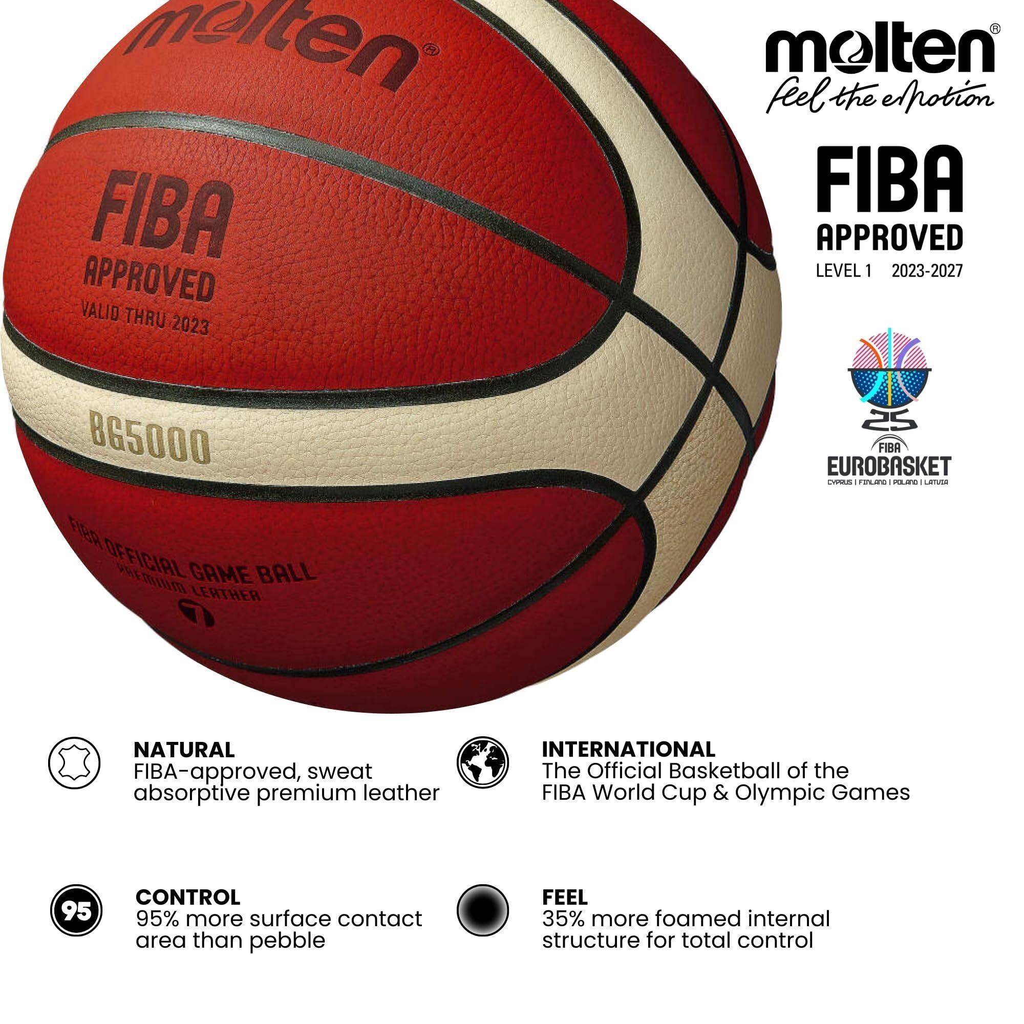 モルテン(Molten) バスケットボール 天然皮革 貼り 6号球 一般・大学生・高校生・中学生女子用 国際公認球 検定球 BG5000 B6G5000 ブラウン