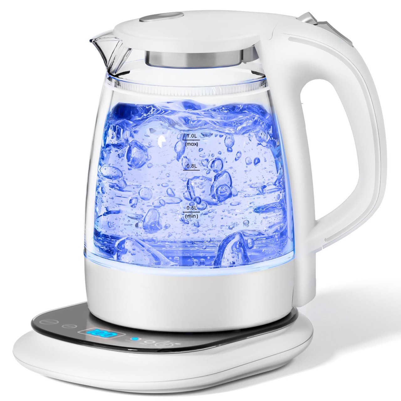 【特価セール】ハゴオギ (HAGOOGI) 電気ケトル 温度調節 ガラス 1.0L【最新昇級版】 LEDライト付き 8段温度設定 24時間の保温機能 二重構造 火傷防止 自動電源オフ 空だき防止 湯沸かし器 調乳 紅茶 お茶 コーヒー 新生活 PSE認証済み (ホワイト)