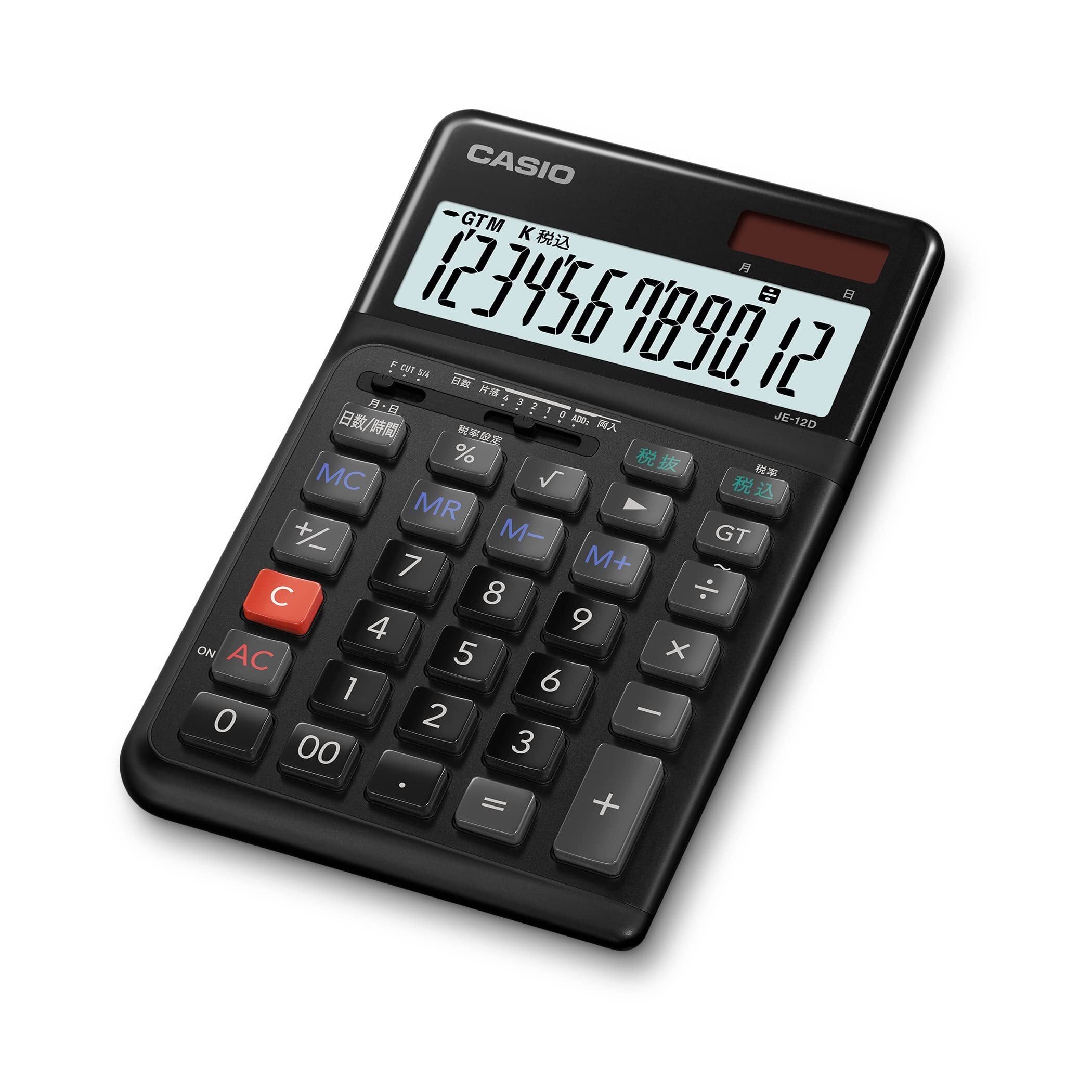 カシオ 人間工学電卓 12桁 日数&時間計算機能 ジャストタイプ ブラック JE-12D-BK-N エコマーク認定