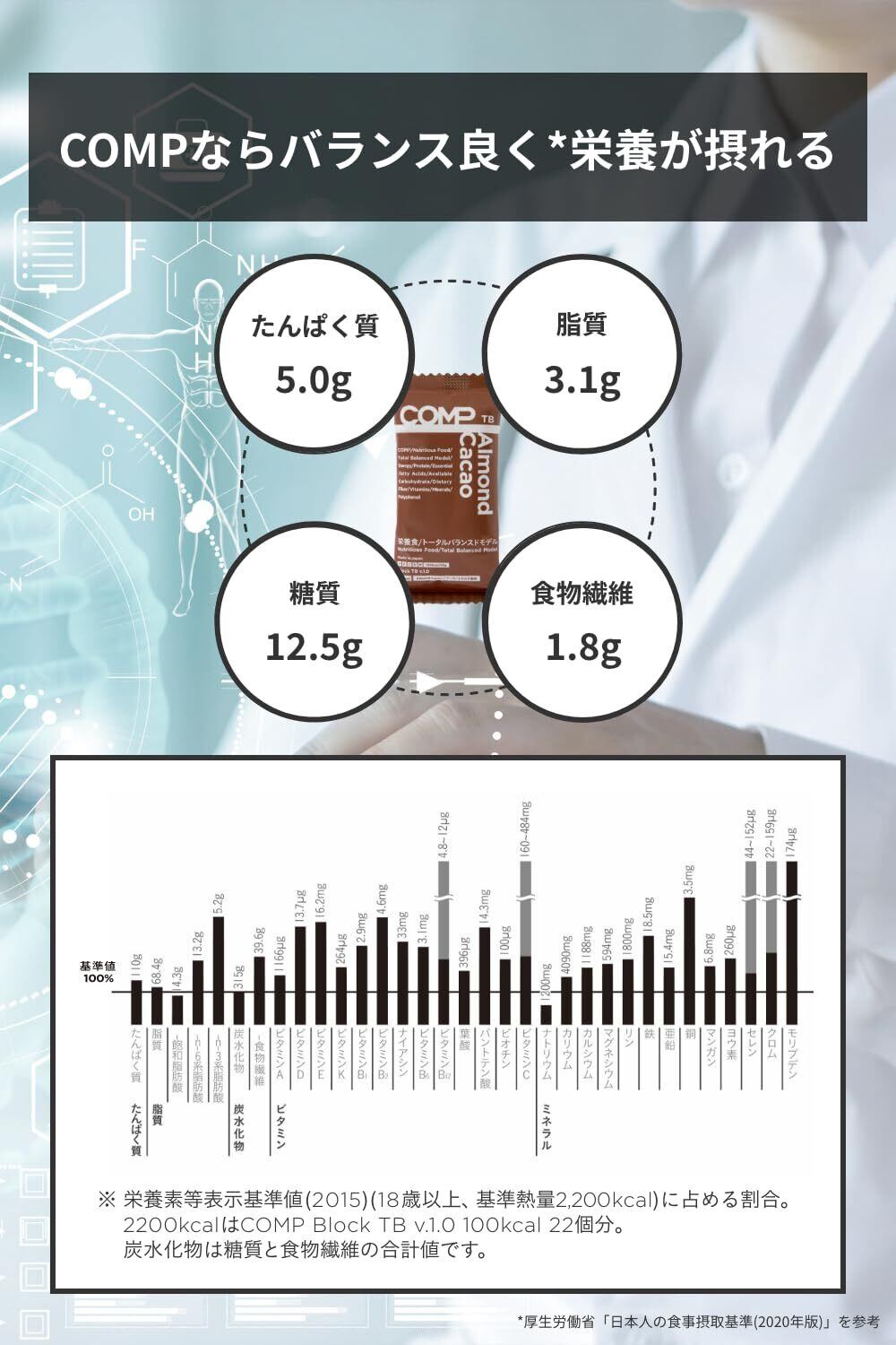 【人気商品】COMP Block TB Almond Cacao(v.1.0 624g 24本1箱) バランス栄養食 トータルバランスドモデル 完全食 チョコレートパウダー ココア 高たんぱく質 必須アミノ酸 必須脂肪酸 食物繊維 ビタミン ミネラル ポリフェノール | ニコニコSHOP