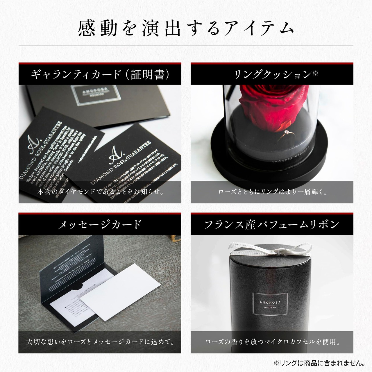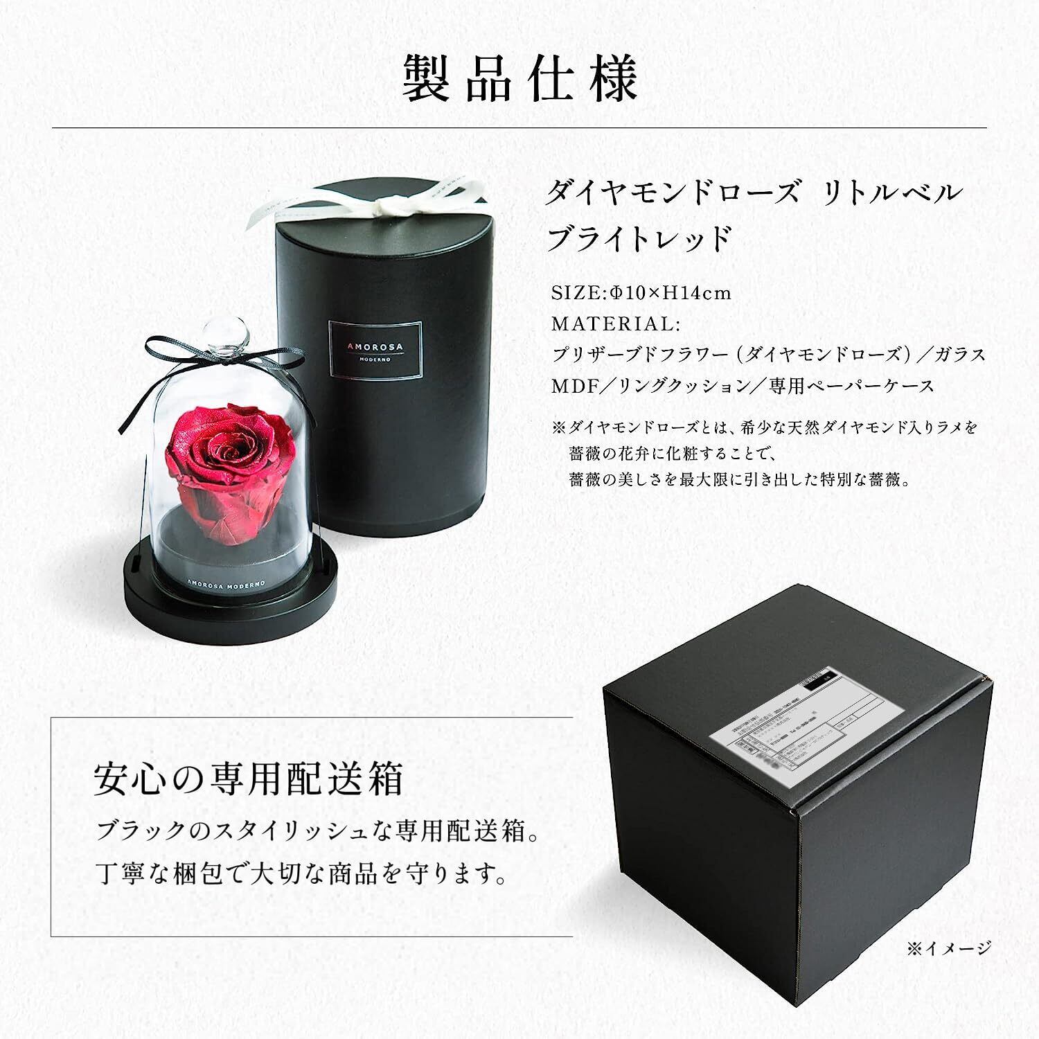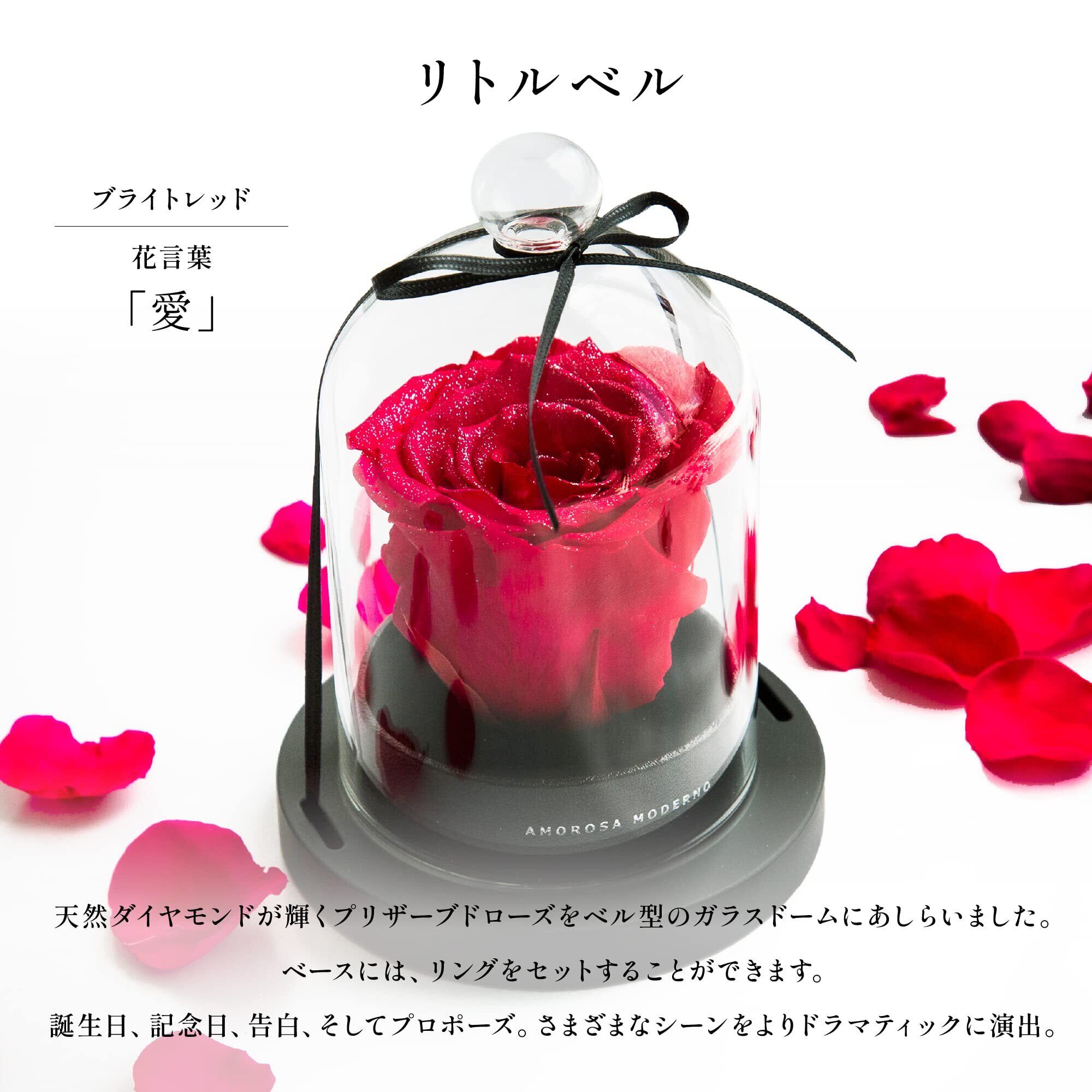 AMOROSA アモローサ プリザーブドフラワー ダイヤモンドローズ リトルベル ブライトレッド バラ ギフト 花 誕生日 結婚 記念日 プロポーズ ドライフラワー AM19-30