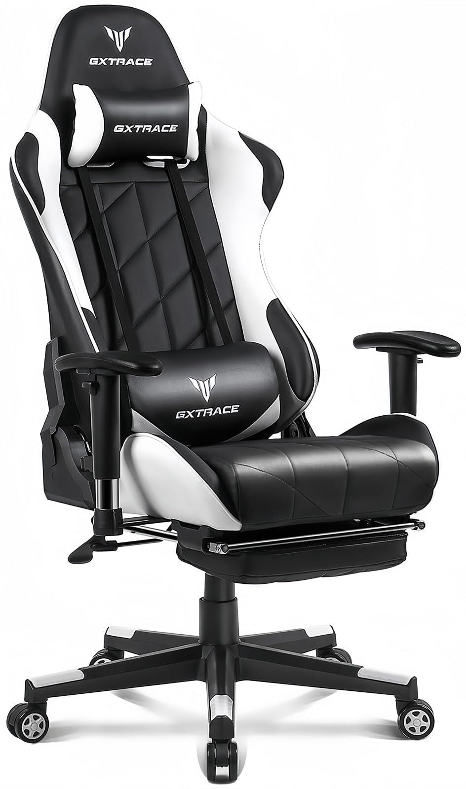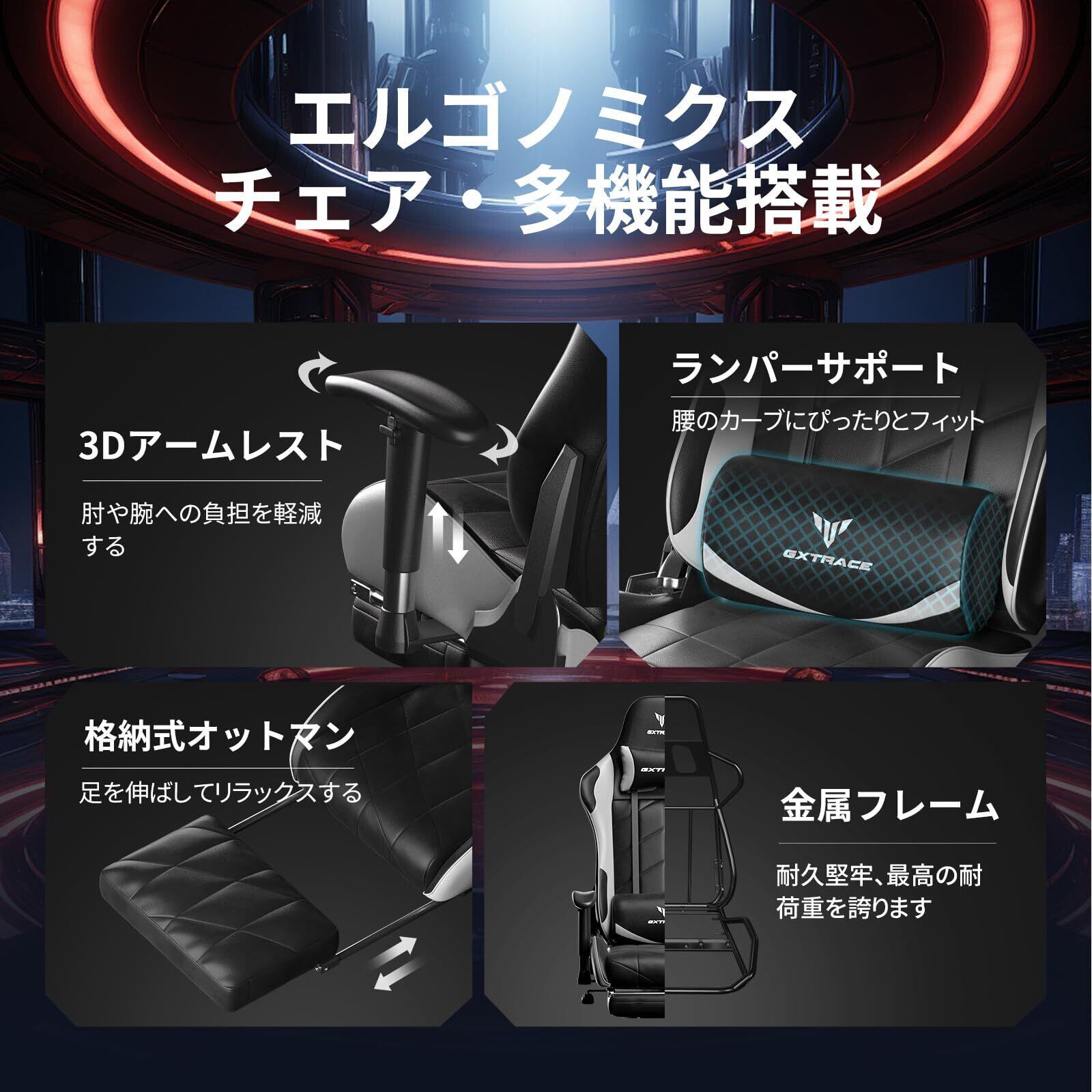 GXTRACE ゲーミングチェア ゲームチェア オットマン付き オフィスチェア 人間工学 165度 リクライニング ハイバック テレワーク 椅子 PCチェア (White)