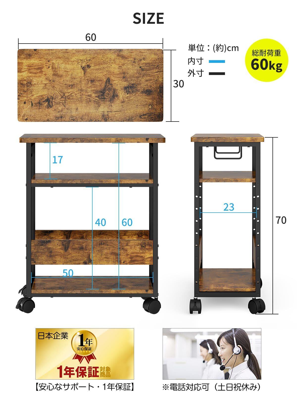 【新春セール】MIYOKI パソコンワゴン PCワゴン 複合機ラック CPUワゴン キャスター付き デスクワゴン 棚板高さ調節可能 パソコン収納 木製 デスクサイドワゴン 収納棚 ストッパー付き 移動便利 幅60×奥行30×高さ70cm (ビンテージ) | ニコニコSHOP