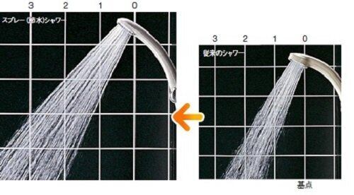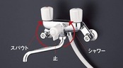 一時止水機能付き:スパウト吐水とシャワー吐水の切り替えができ、さらに一時的に止水もできる。