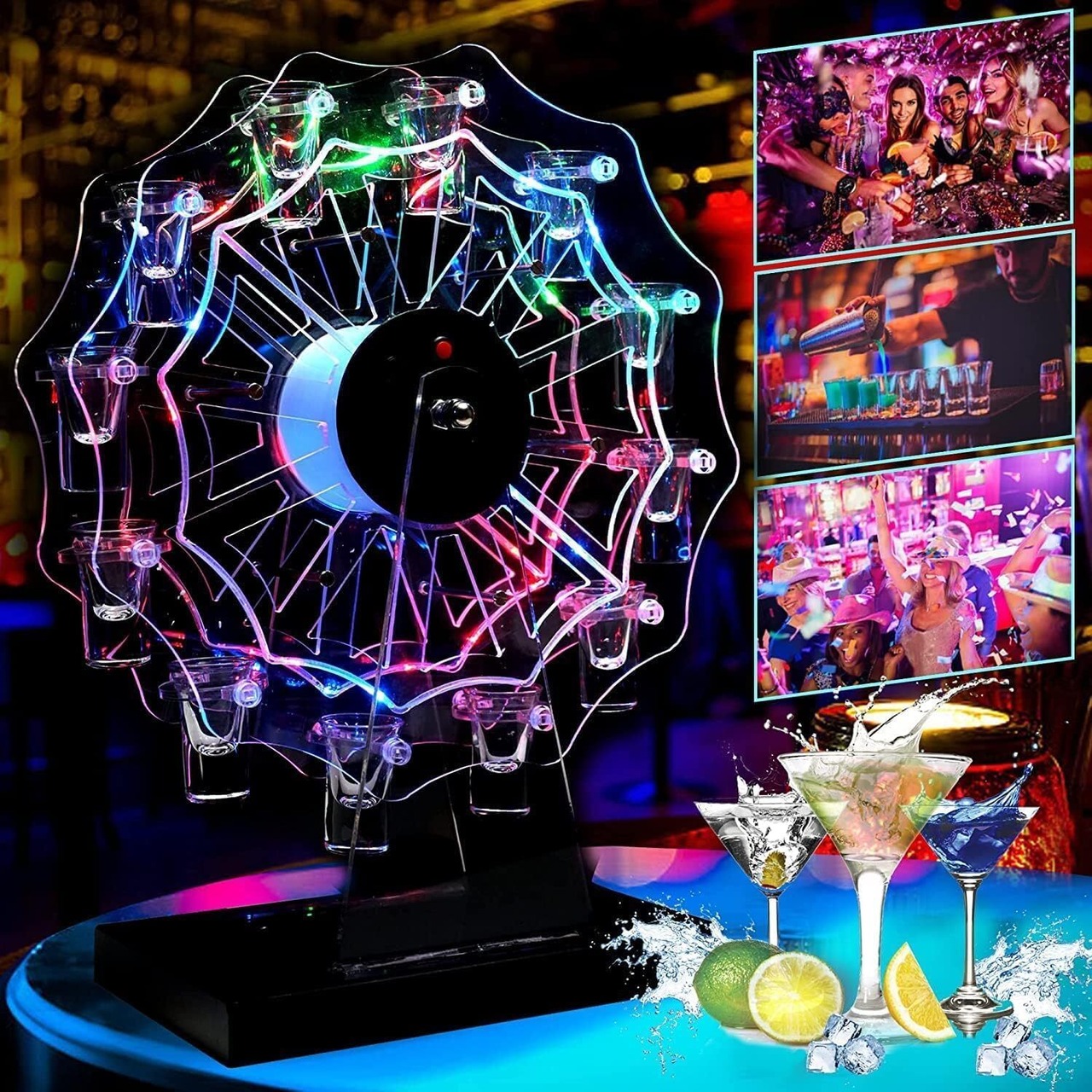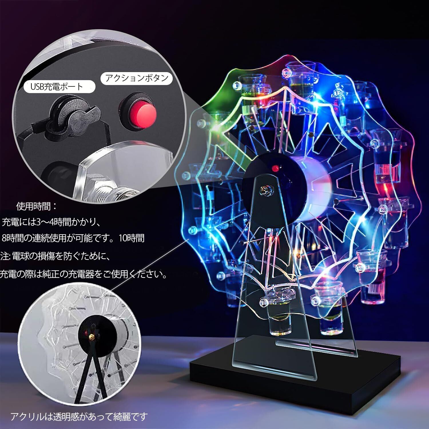Batoneテキーラ観覧車 LED酒ボトルの表示棚 12カップ バーホテルLED酒棚の表示棚 LED酒グラス 収納ラック KTVナイトクラブに最適 子供のパーティ パーティ パーティの装飾品充電式 自動カラーチェンジ 誕生日 クリスマスパーティ レストラン 新年会 飲み会 忘年会 贈り物 バーホテルLED酒棚の表示棚 LED酒グラス 収納ラック (ワイングラスは付属しません)