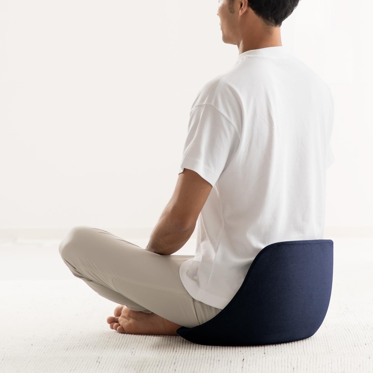 ④骨盤が立って安定するサポート設計 KURA SEAT HBは前後から骨盤を支える形状により、お尻の前ズレや姿勢崩れを防ぎます。前部の盛り上がりと後部の背面サポートにより、床座りでも椅子置きでも、座るだけで骨盤がスッと立って美しい姿勢へと導きます。