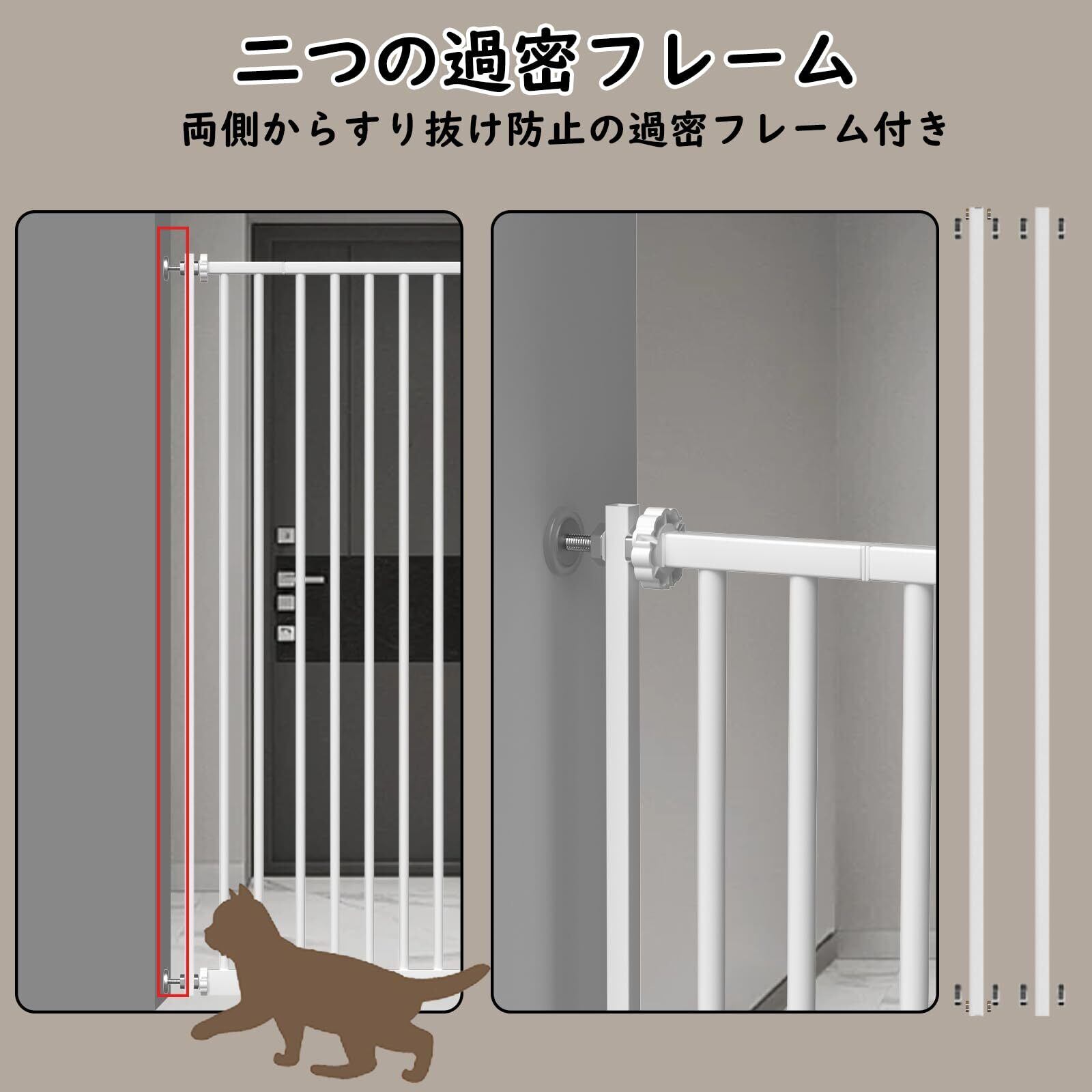 【赤ちゃんとペット脱出防止・すり抜け防止】高さが100cm以上のハイゲートので、赤ちゃんや猫、犬がベビーゲートから逃げるのは簡単ではない。通常タイプと違って柵間の隙間は3.5cmです、子猫のすり抜け防止ゲートです。高さ103cm、幅は76cmから216cmまであります。お子様やペットの安全を守ることができるハイゲートです。ベビーゲートは、玄関、キッチン、部屋、階段上、ランドリーなど、家の中のさまざまな場所に適しています。