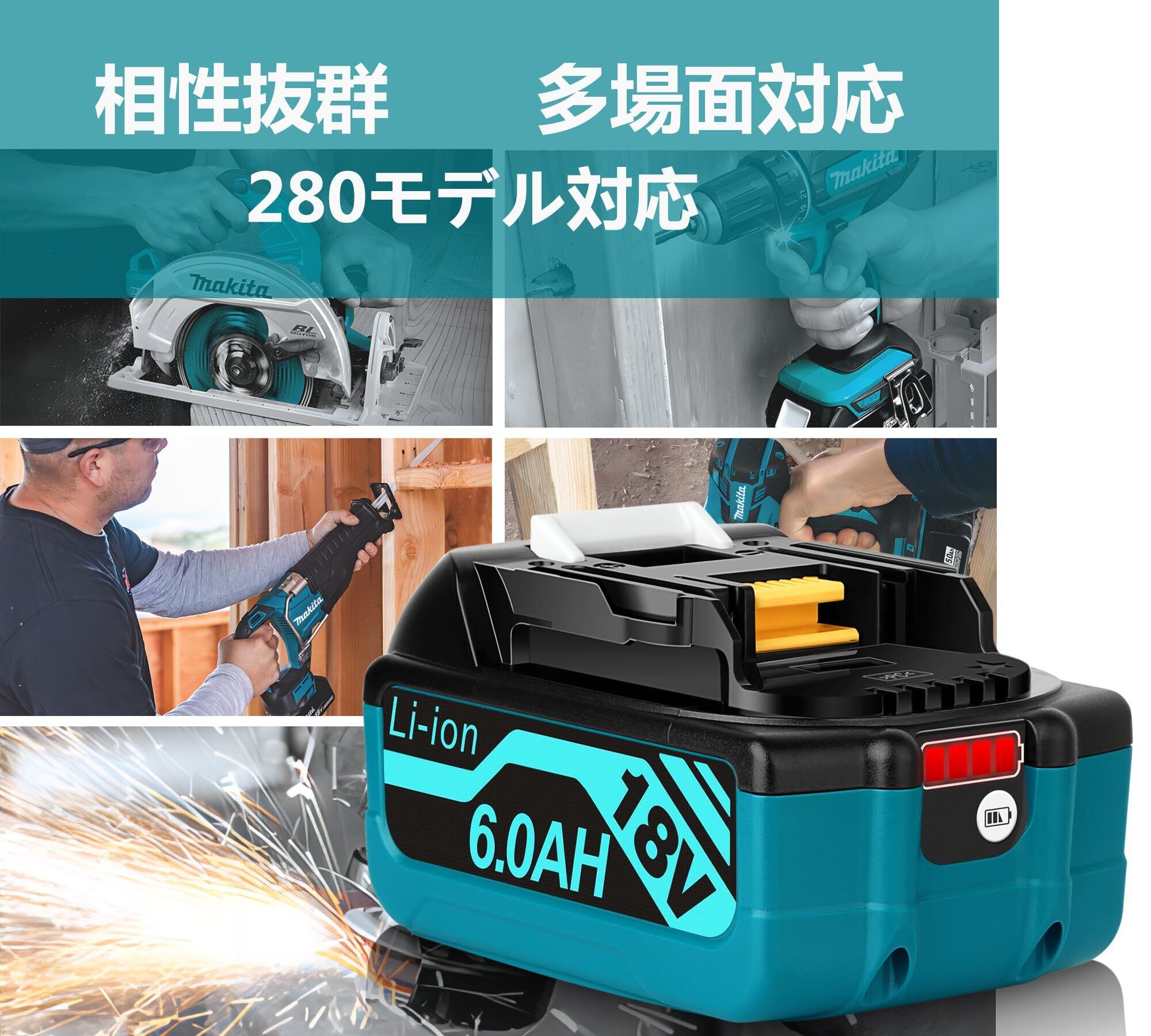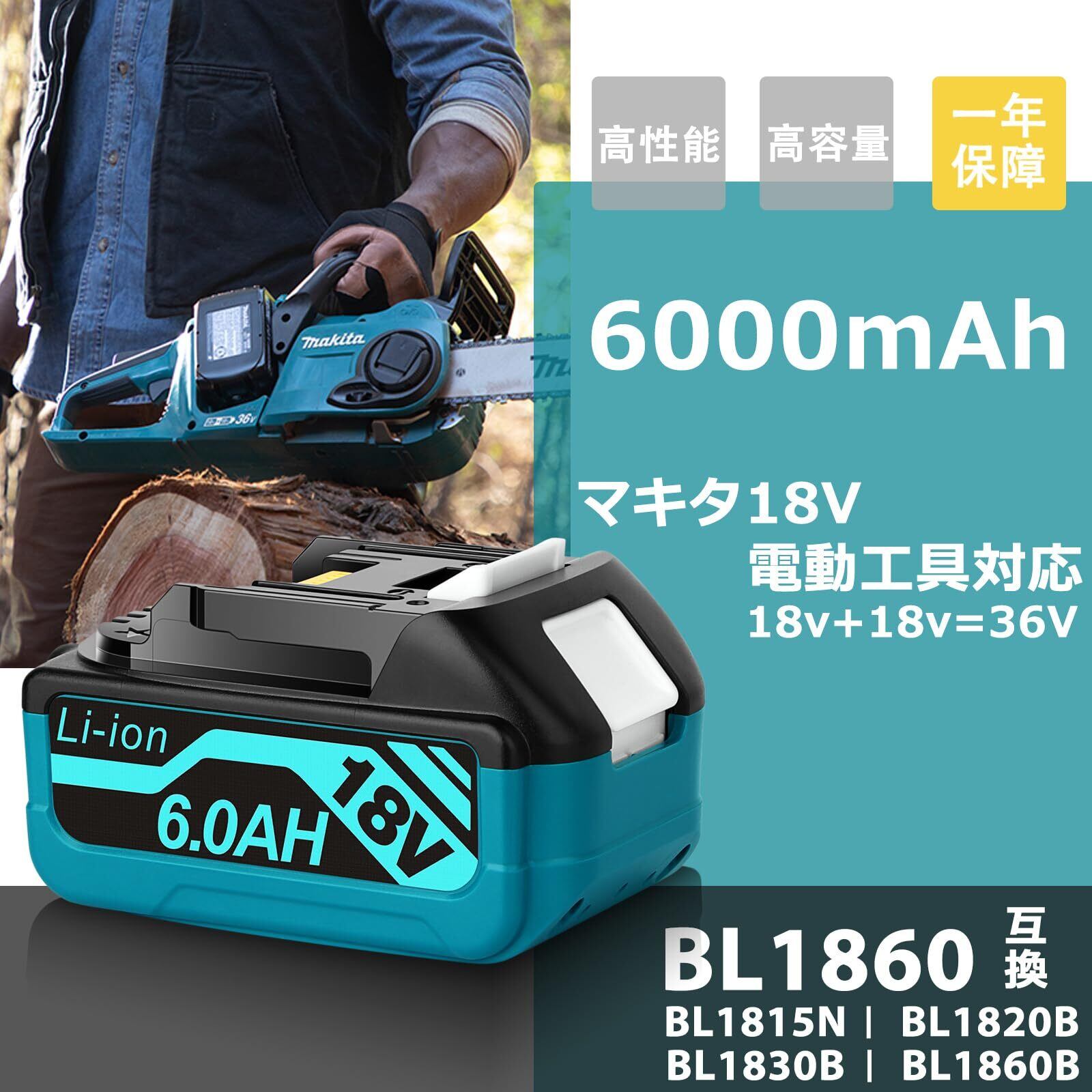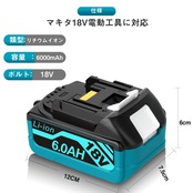 【仕様】BL1860 互換用マキタバッテリー 18V 6.0Ah(6000mAh) 電池残量表示(4段階) 一年保障&24時間対応(祭日抜き)
