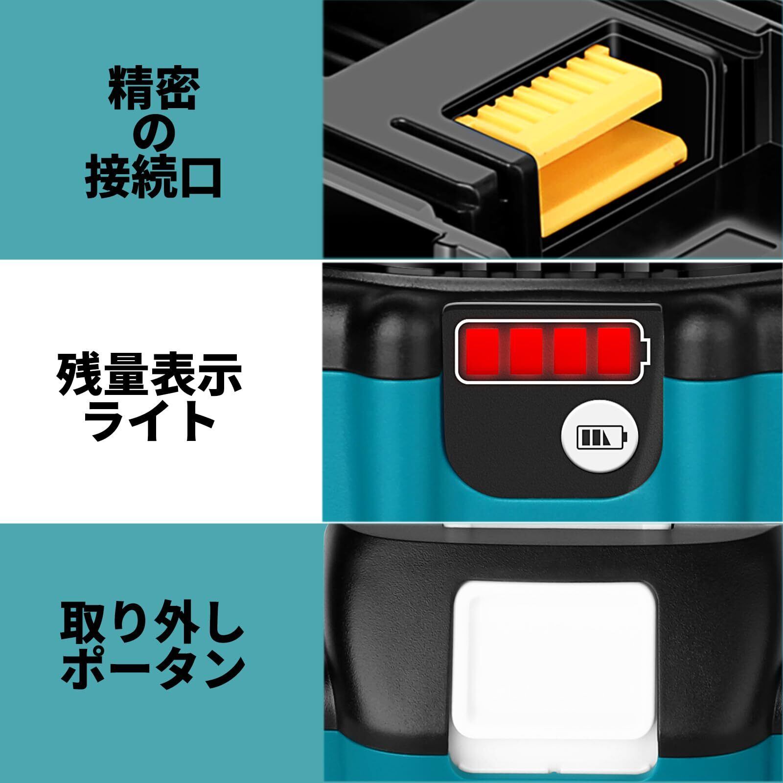 【互換バッテリー】:BL1815b BL1820b BL1830b BL1840b BL1850b BL1860b BL1870b 194205-3 194230-4 LXT400、【対応充電器】:DC18RF、DC18RE、DC18RD、DC18SD、DC18SFなど。