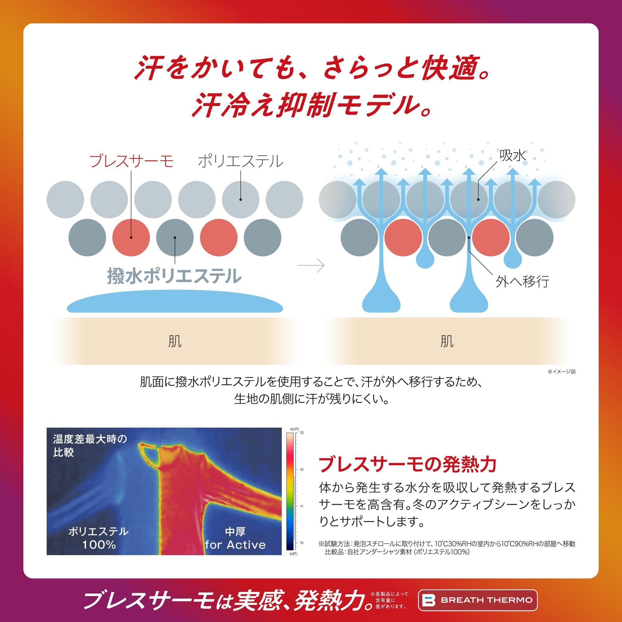 汗冷え対策モデル。クルーネック, 長袖仕様でしっかり保温。