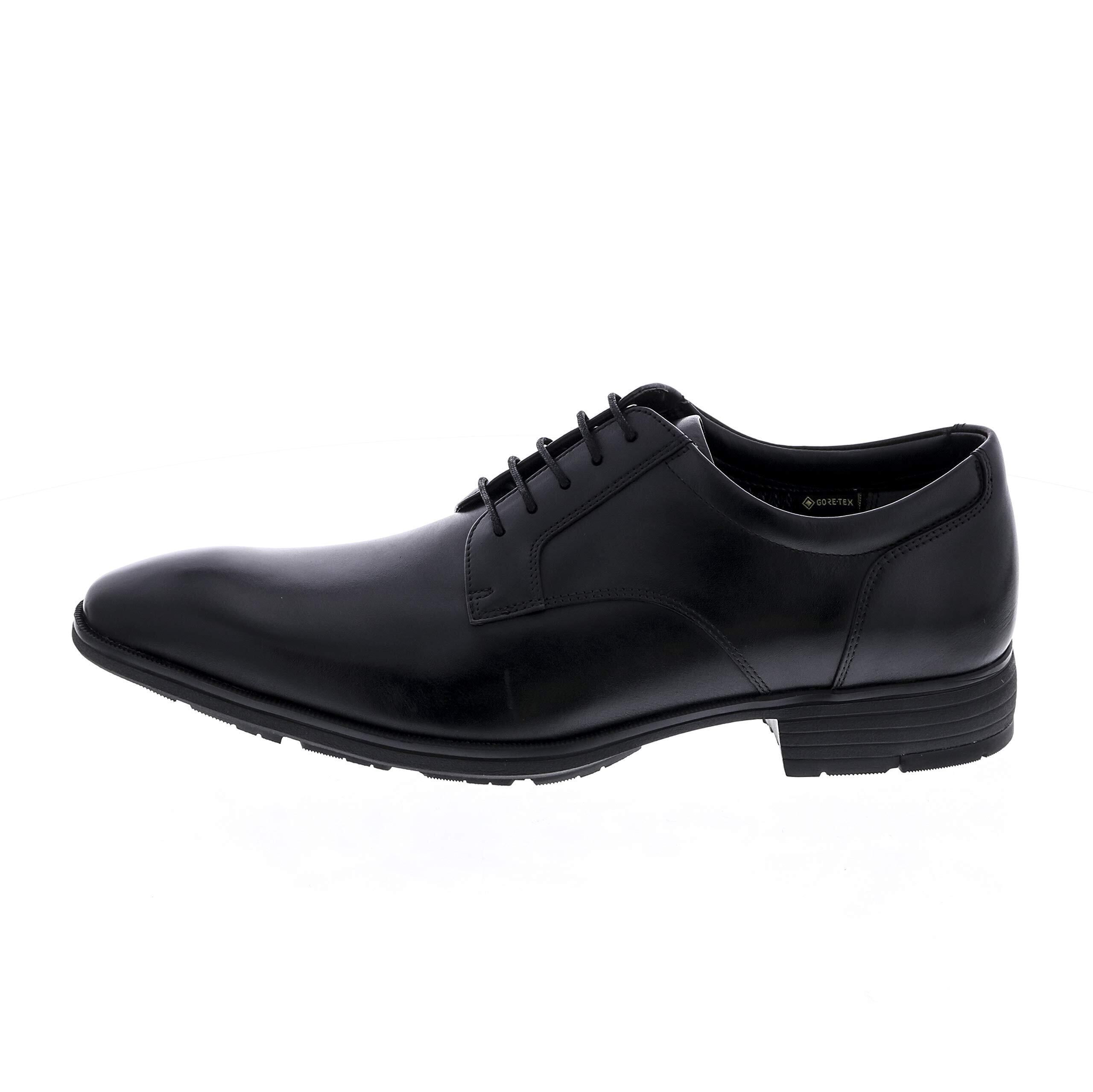 【GORE-TEX】 タフに使える全天候型ビジネスシューズ。ゴアテックスメンブレン採用:透湿防水性素材をライニング材に使用し、じめじめした雨の日のストレスを軽減します。幅広3E相当/クッション性と屈曲性に優れ、軽量感のあるE.V.A.インジェクションソール採用/踏みつけ部に「低硬度ラバー」、かかと部に「高耐摩耗ラバー」を採用し、凹凸感のある意匠にてグリップ性と耐久性を考慮/インナーソールつま先部に消臭繊維「MOFF」、インナーソール表面に抗菌繊維を採用(JIS L1902:菌液吸収法)/足当たりのやわらかく、へたりにくい中敷きを採用し、歩行時の耐圧を足裏全体で支持/土ふまず部分にフィットするパッド/足首をやさしく包み込む履き口スポンジパッド/ベロ裏クッションを採用し、足の甲部にやさしくフィット/履き口(内側)にゴアを使用し、脱ぎ履きが快適な仕様。