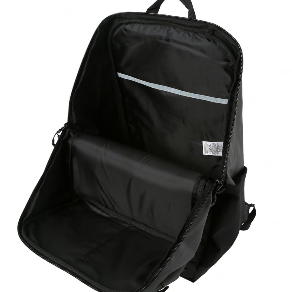 耐久性、耐水性の高いコーティングポリエステル素材を採用したバックパック。前面に芯を入れることで自立を促し、メイン収納の開口も大型のファスナーを配置することで取り出しやすさ、使いやすさを追求したデザイン。上部の携帯、アイウェアなど小物を分離収納できるポケットが機動力を向上させる。ショルダーストラップはRED CODEで通気性とクッション性を兼ね備え、体にかかる負荷を軽減させる構造。各所に散りばめられたディテールが機能性をアップ。(夜間の視認性を高めるリフレクター引手、ボトルポケット、PC収納、ストレッチチェストベルト)