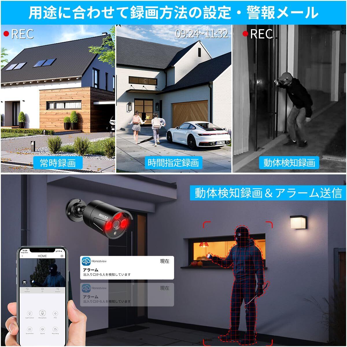 特徴 遠隔監視, 月額料金なしAPP, 音声録画, IP67防水防塵, 4K 800万画素録画機